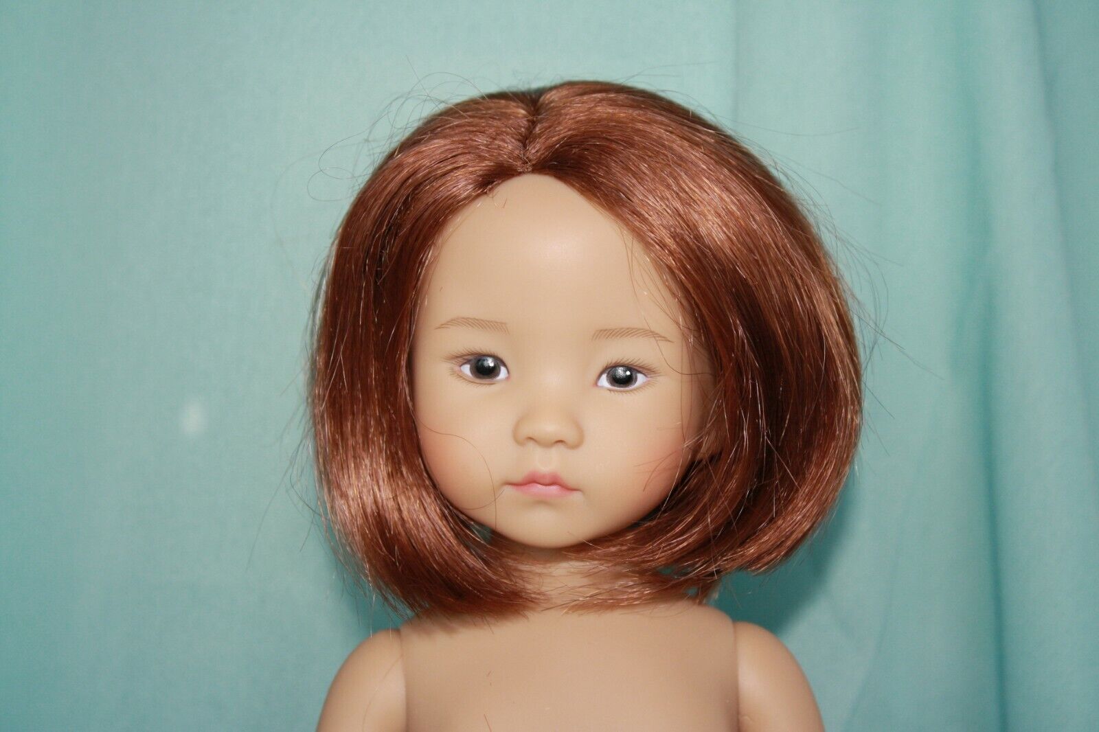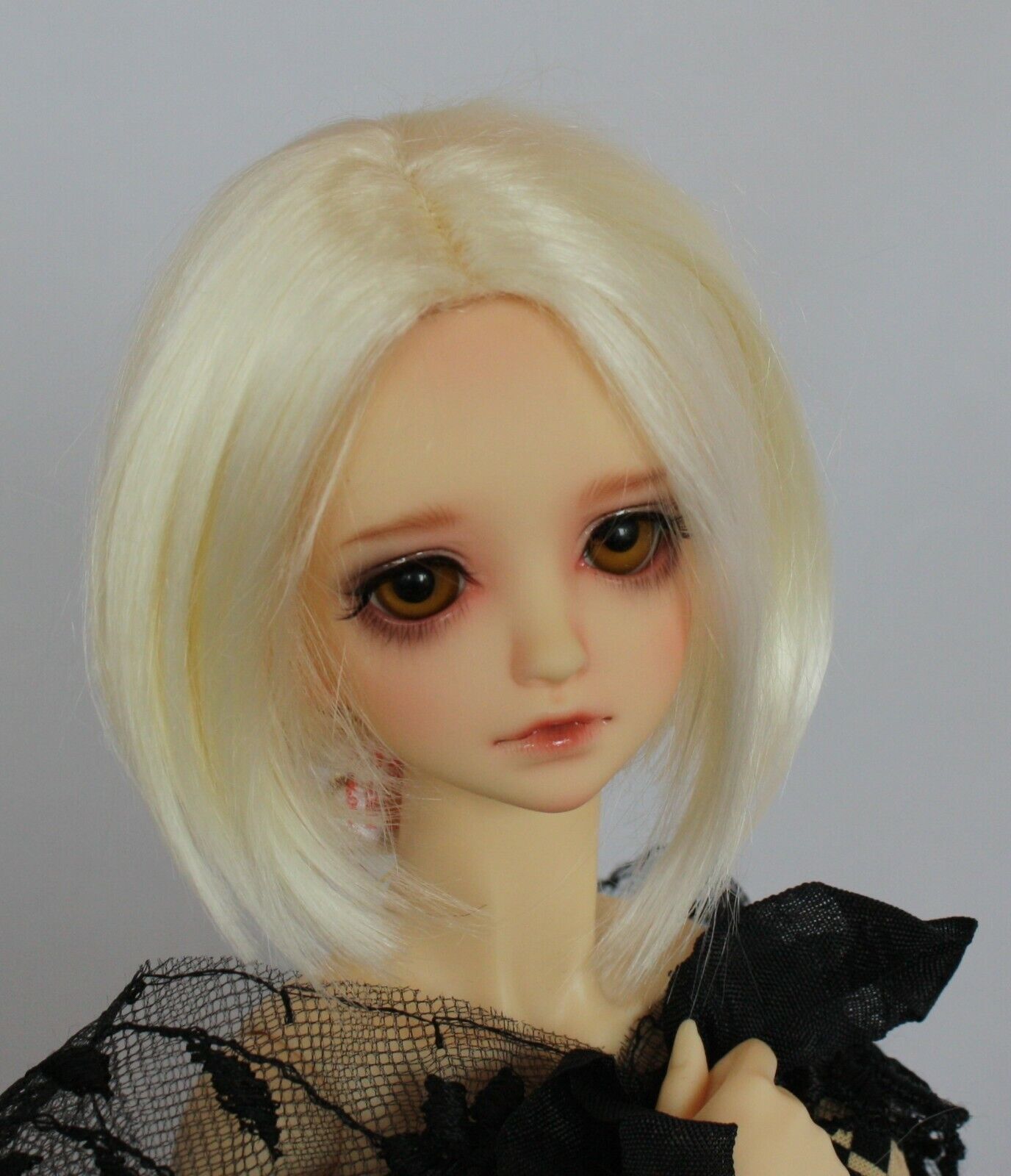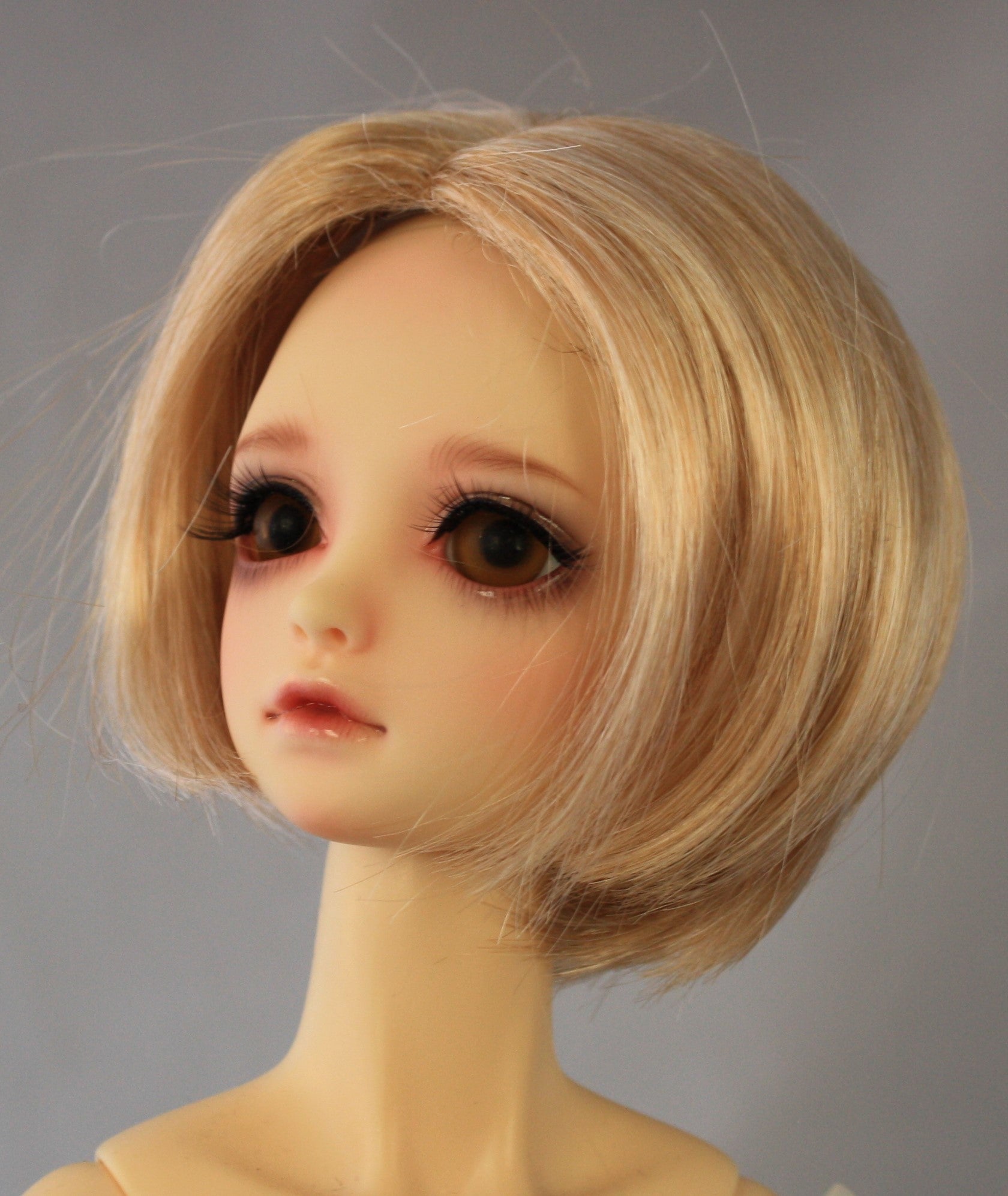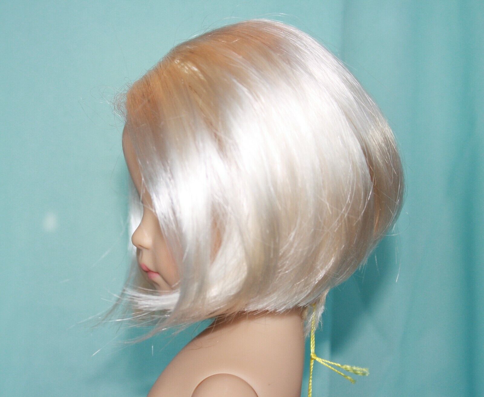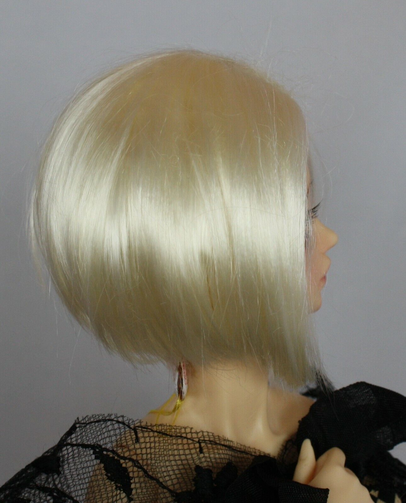 Alexis is a synthetic mohair wig that is parted in the middle with no bangs. It is cut higher in the back and longer on the sides. Very stylish wig!