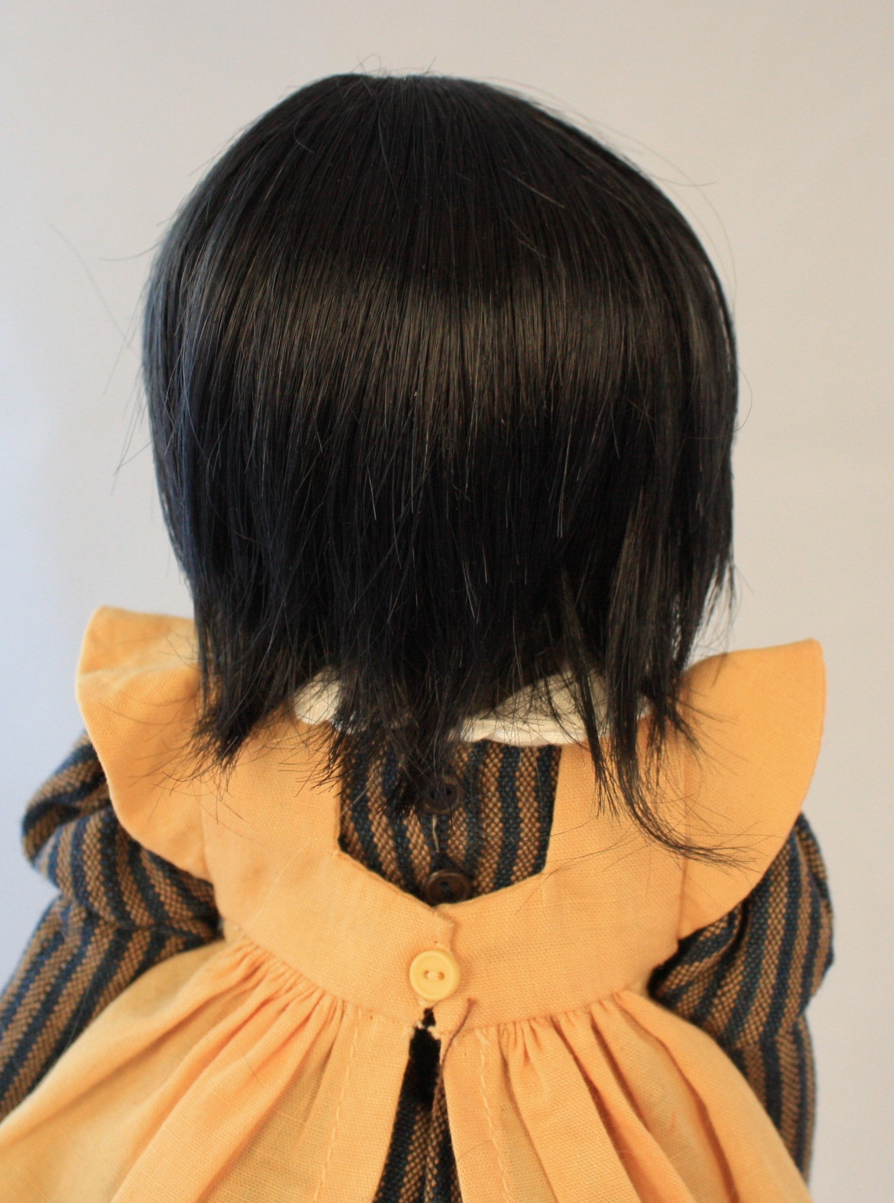 Very nice wig. Not too thick and is wispy. Back is cut shorter than the sides.
