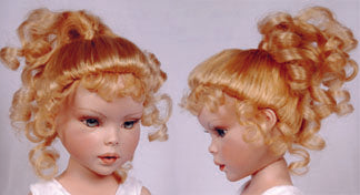 Cute little top knot with cascading curls. Tiny curls for bangs and tendrils.