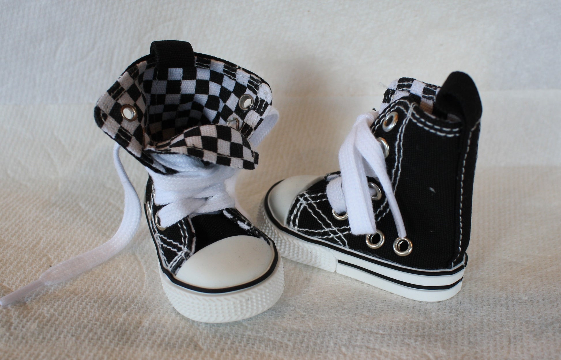 Black High Top Converse Style Tennis Shoe for Ball Jointed Dolls with feet measuring 6.0 Centimeters (cm) in length.