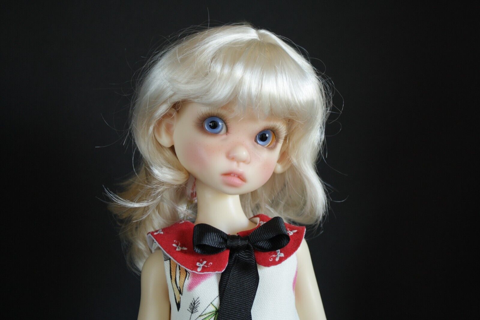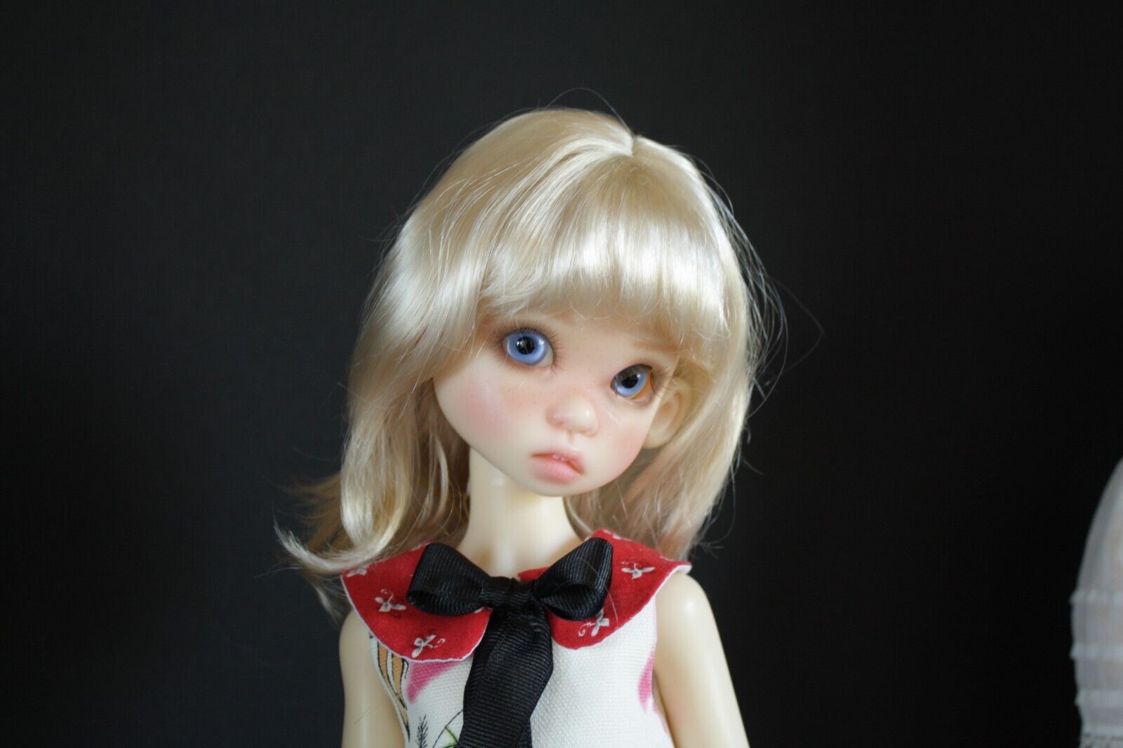 This wig is made of soft synthetic mohair. It is long with bangs and has a slight wave. This is a really nice wig with hair that is not to thick. This wig has a full stretch cap allowing it to fit the range of sizes selected. Stock is very limited for this wig and it is no longer available from the vendor.