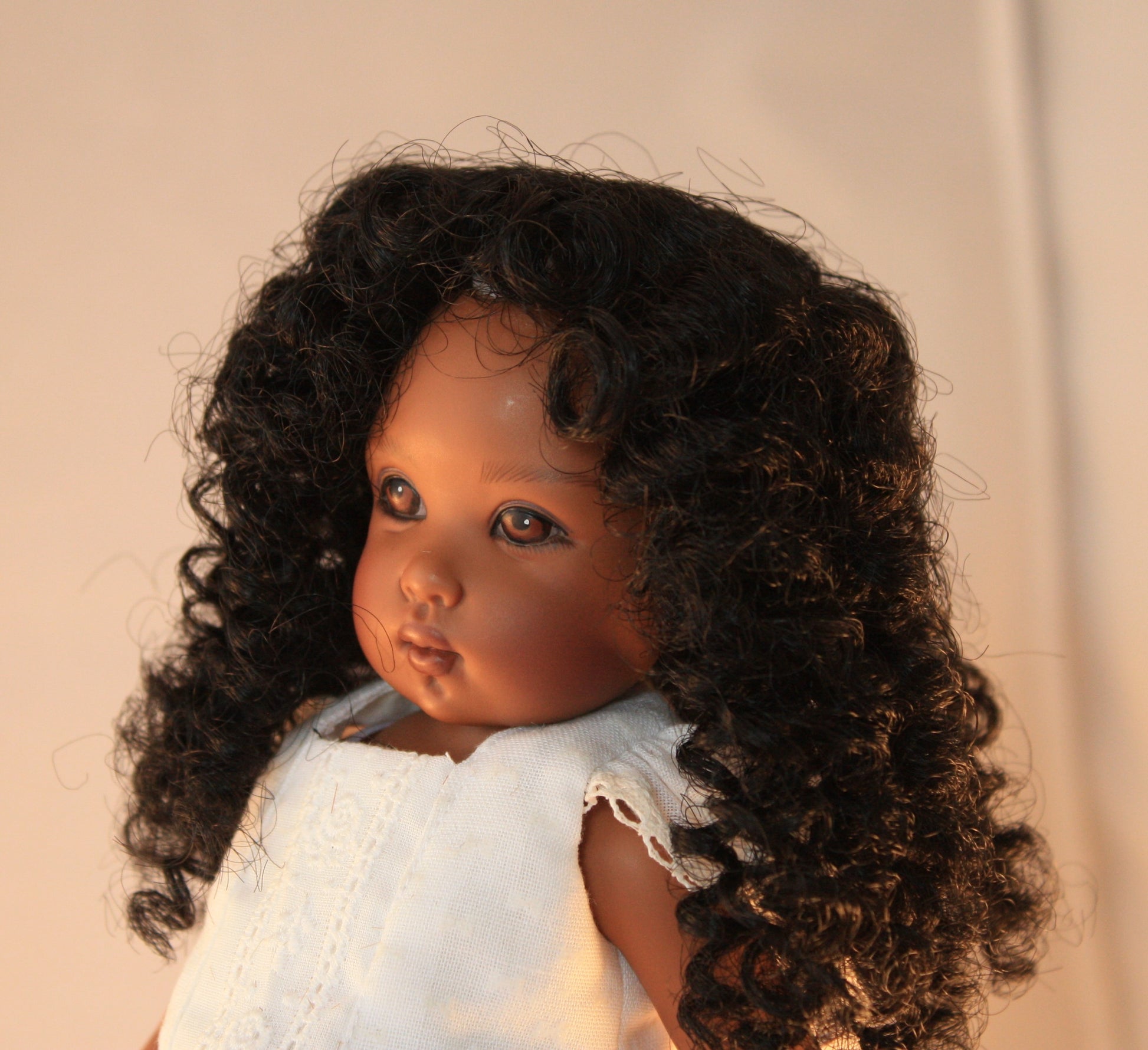 Camille is a tight long spiral curl. It has tiny curls that frame the forehead. It is not a full cap wig and will need to be either glued on or use Velcro to attach it.