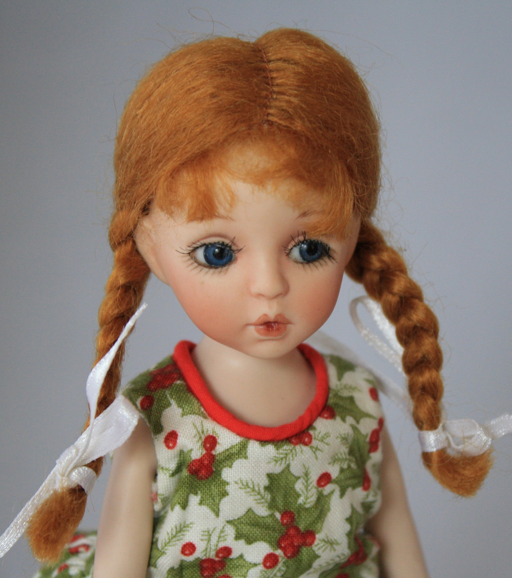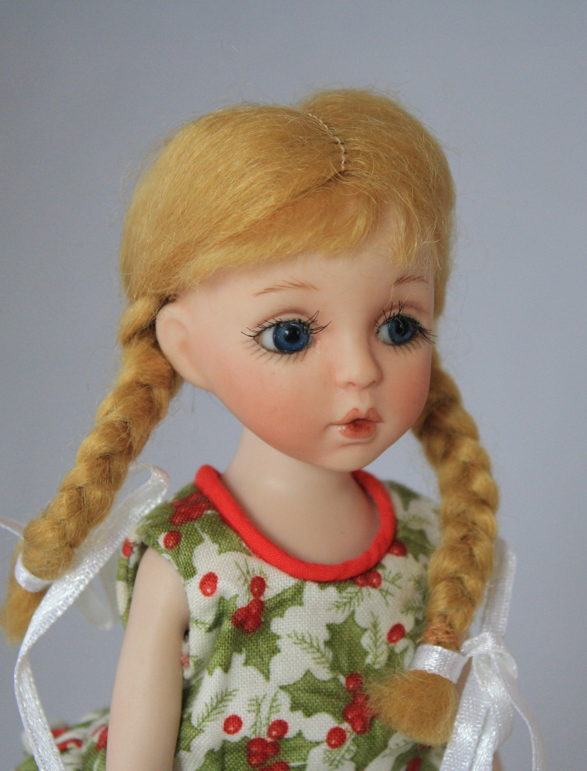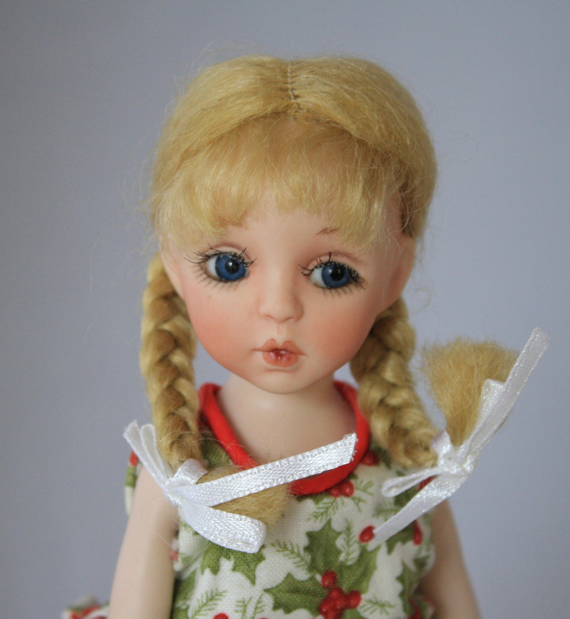 Cheryl style wig comes in the available colors and sizes. She has bangs with long braids tied in bows.