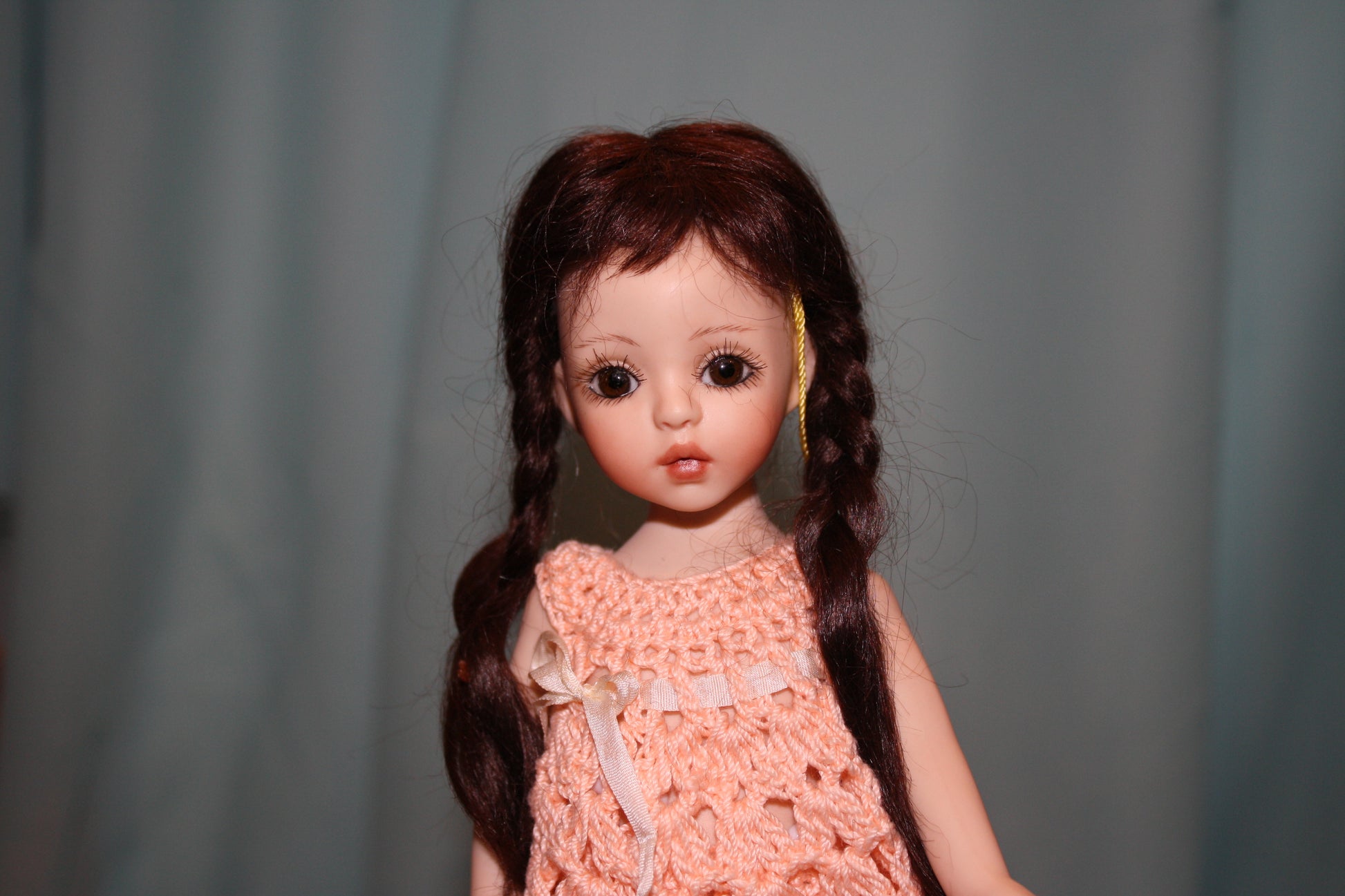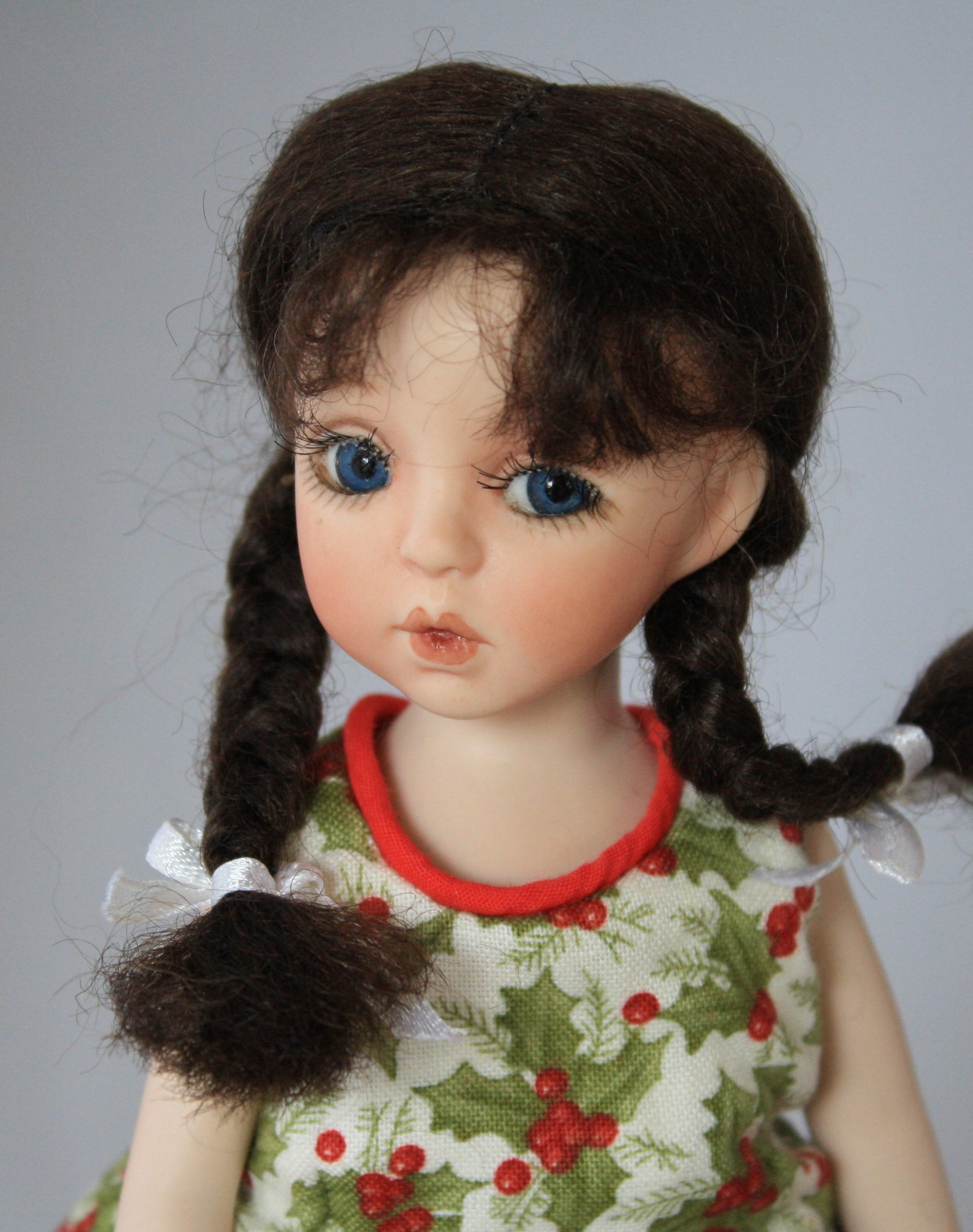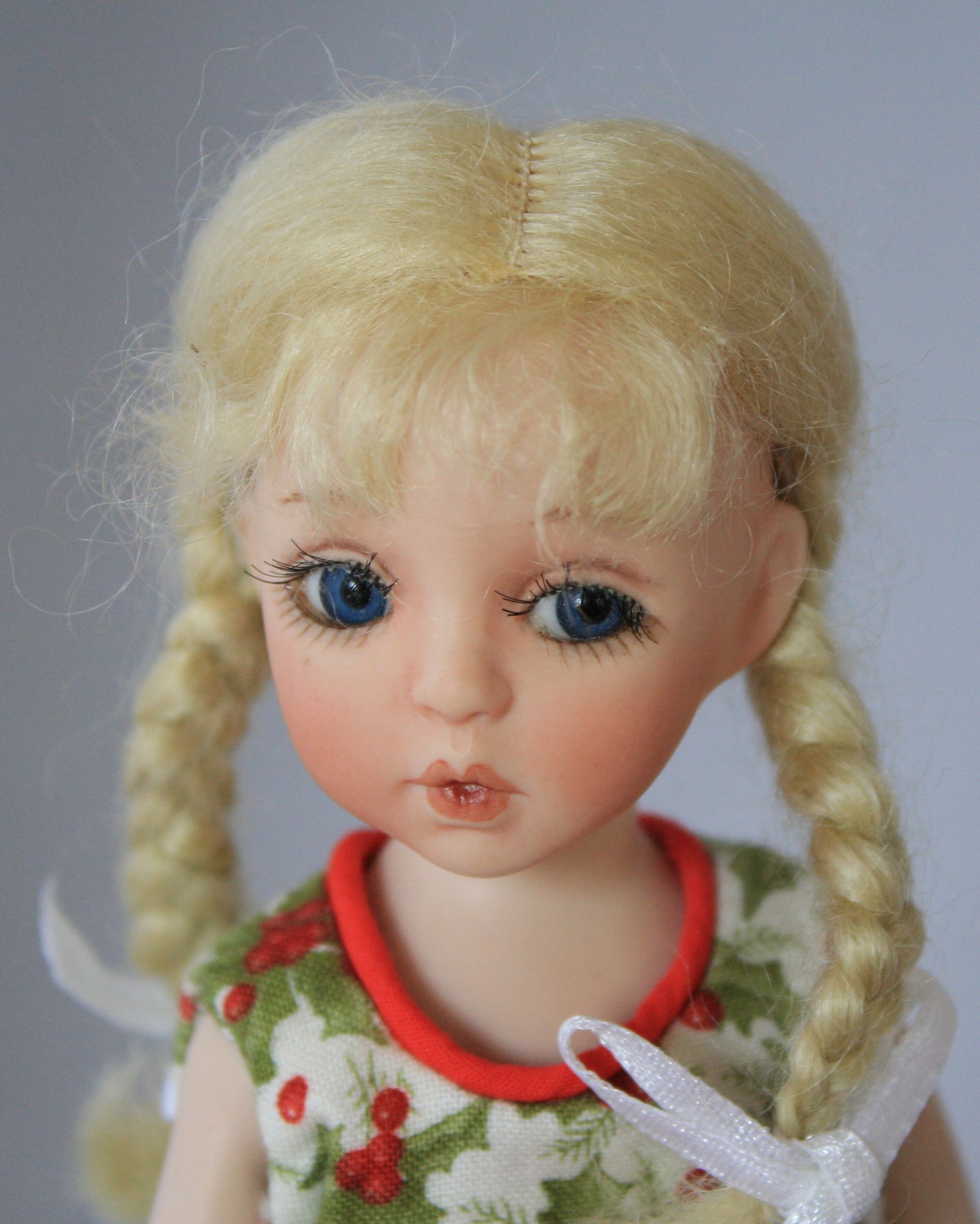 Cheryl style wig comes in the available colors and sizes. She has bangs with long braids tied in bows.