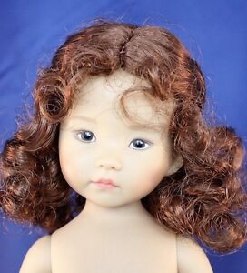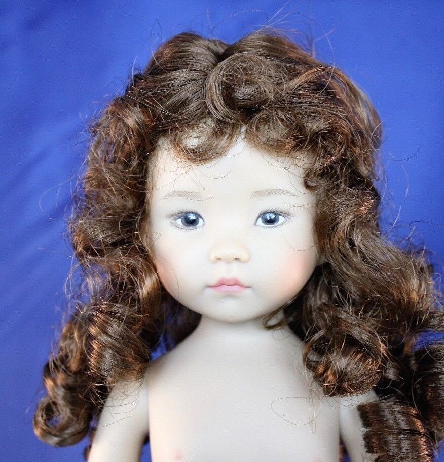 Cute wig with soft curls around the face. Ringlets all around and pulled up on the sides. Tied with a white ribbon.