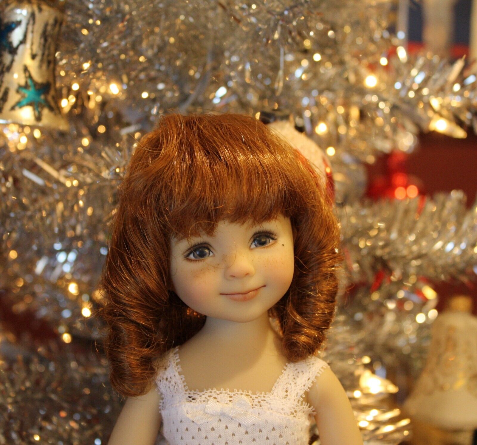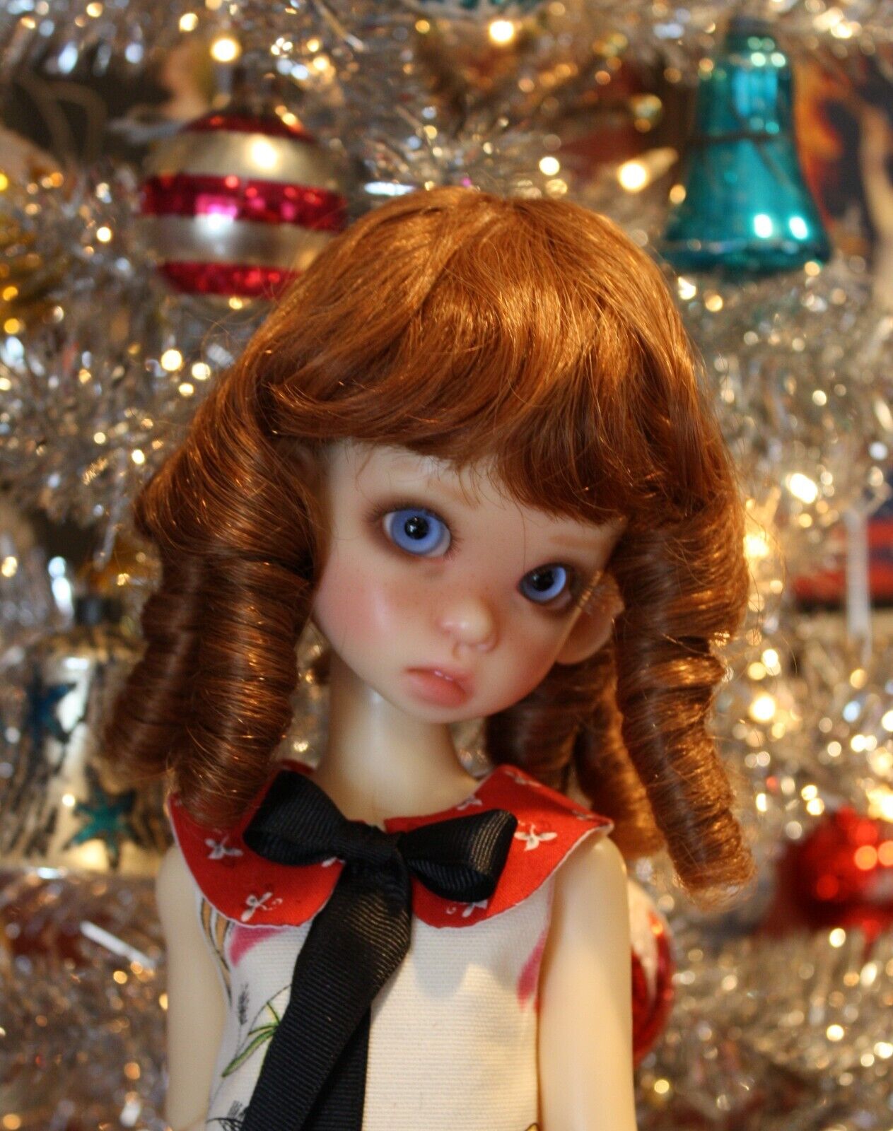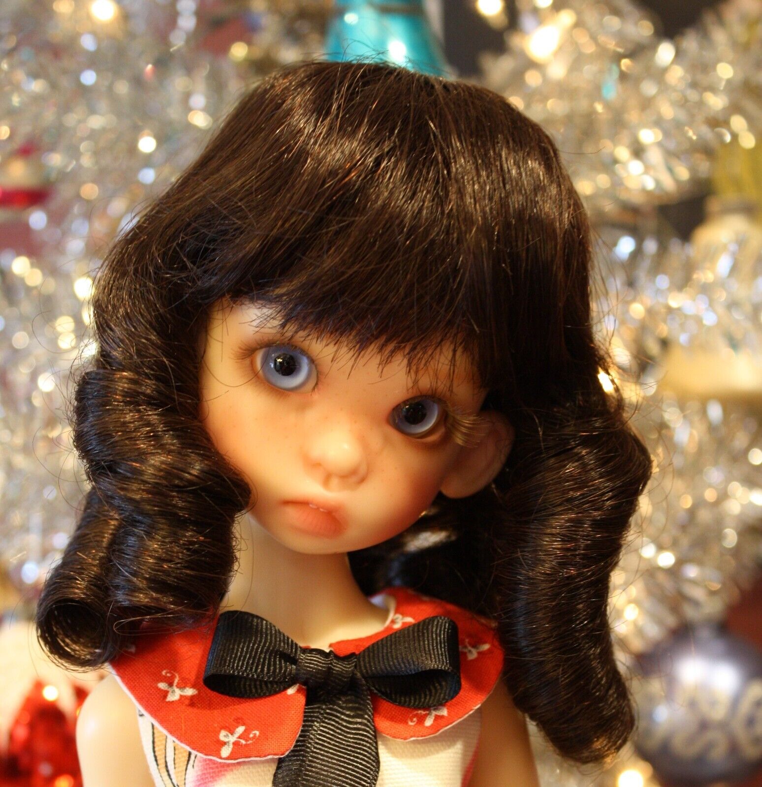 This wig has a nice length of bangs and thick ringlets. The human hair is a nice soft quality