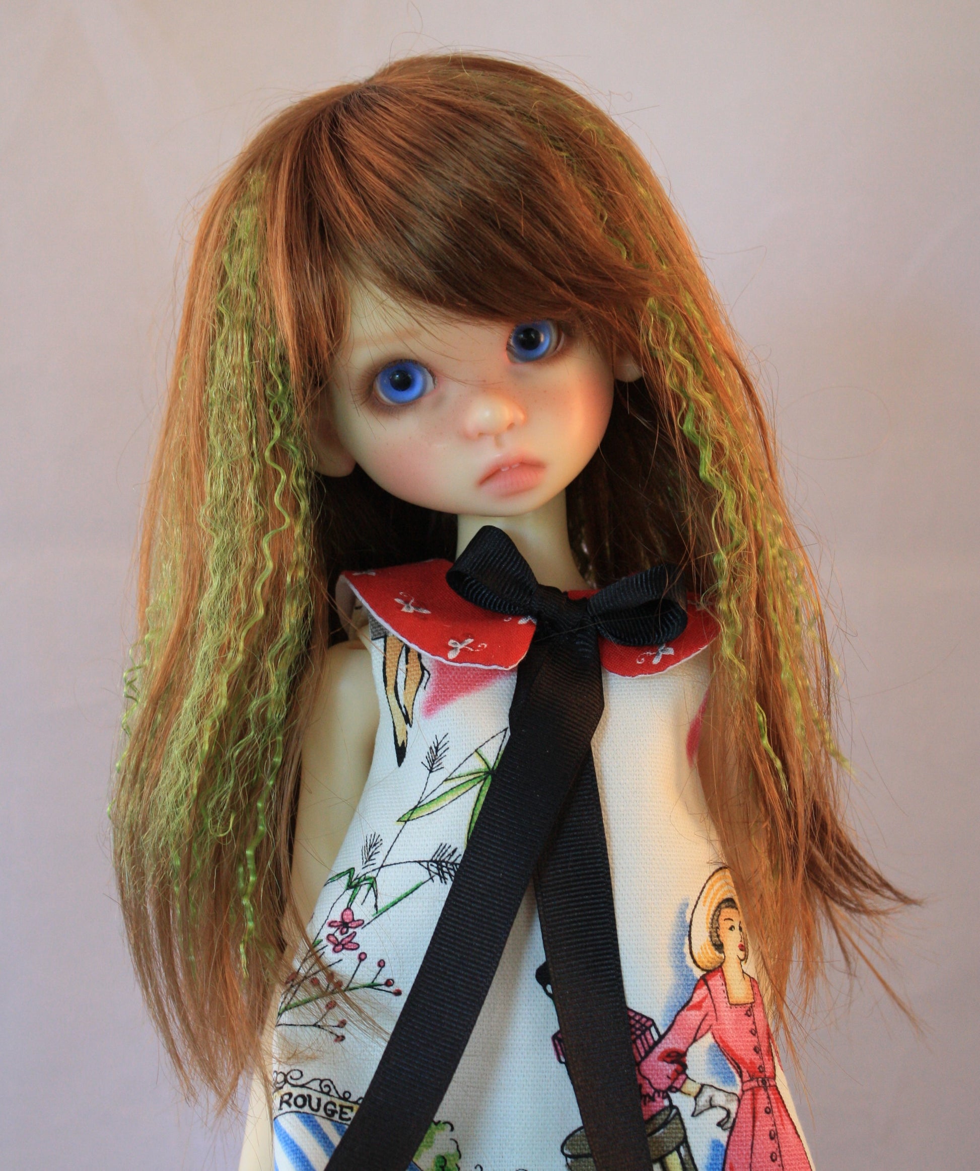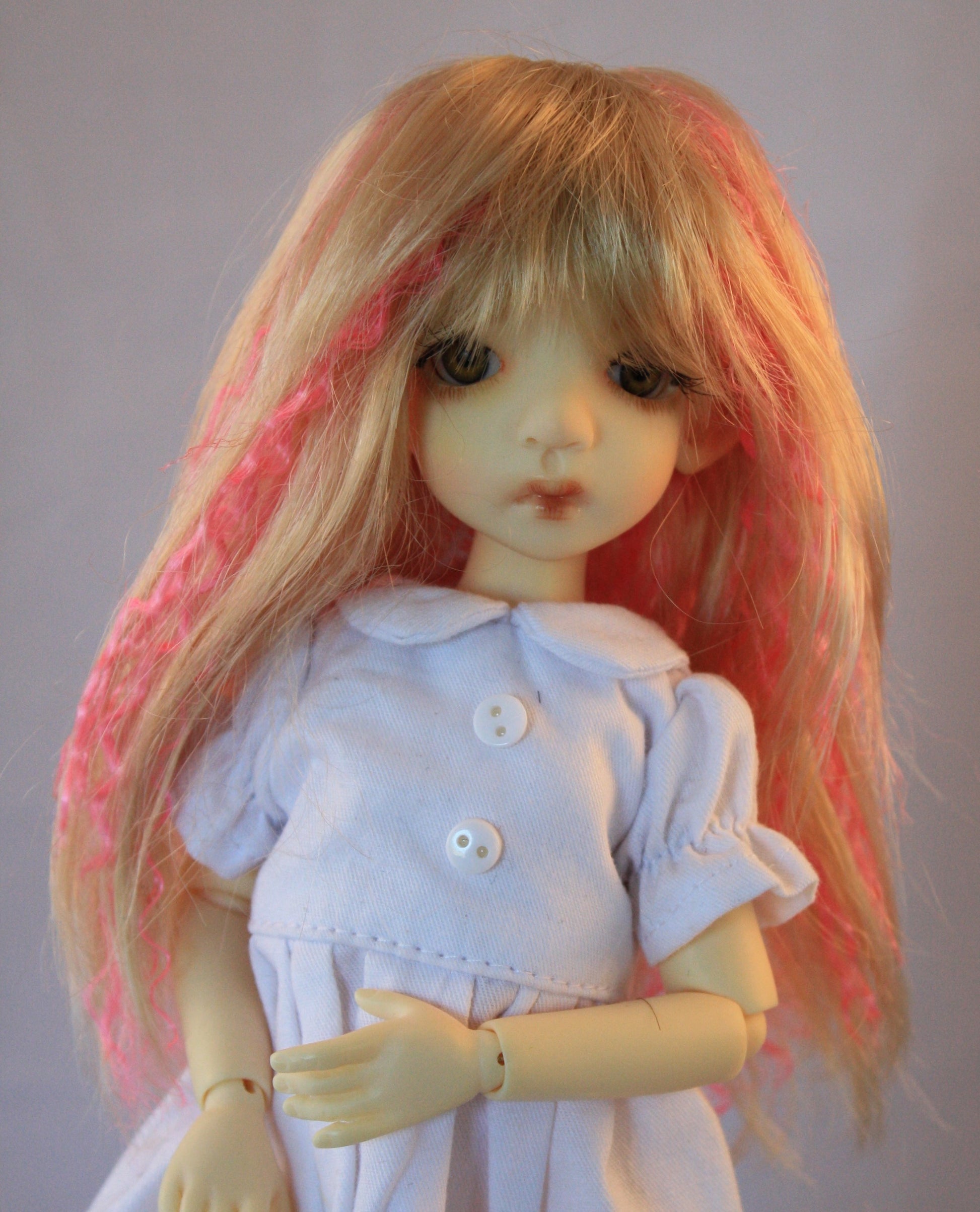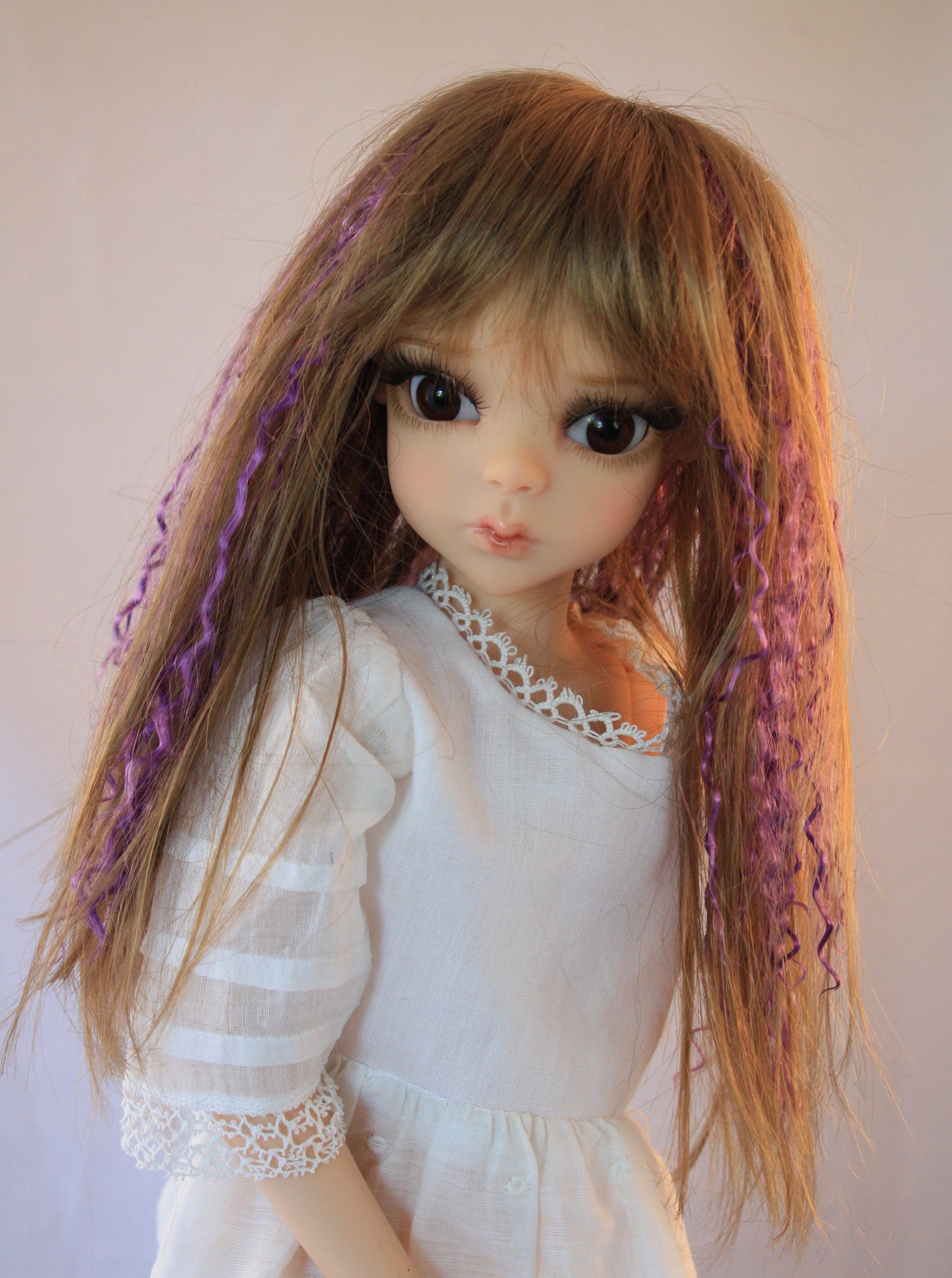 This is a long-feathered wig with some crimping. It has long layered bangs. This wig is very easy to style many different ways.