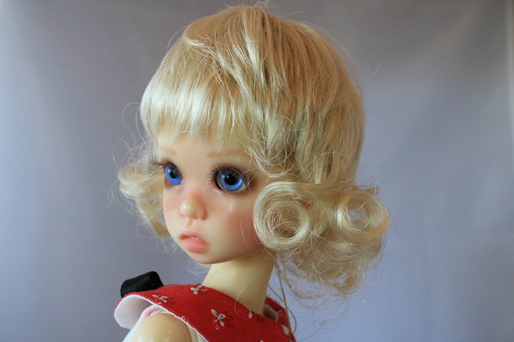 The Jessica style synthetic wig is a short cut wig that works with both young and older style dolls. She comes in a variety of sizes and colors to fit your dolls.