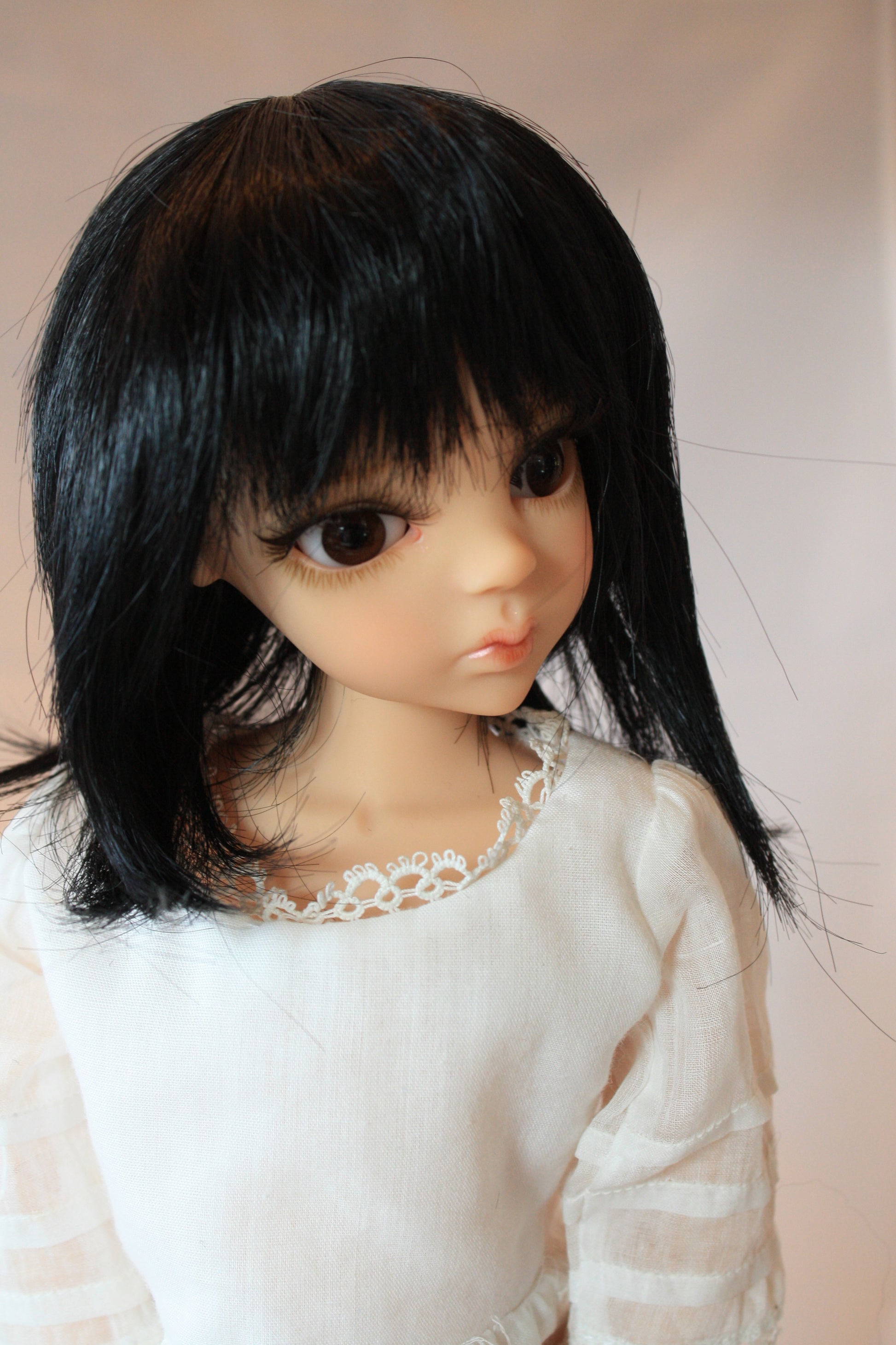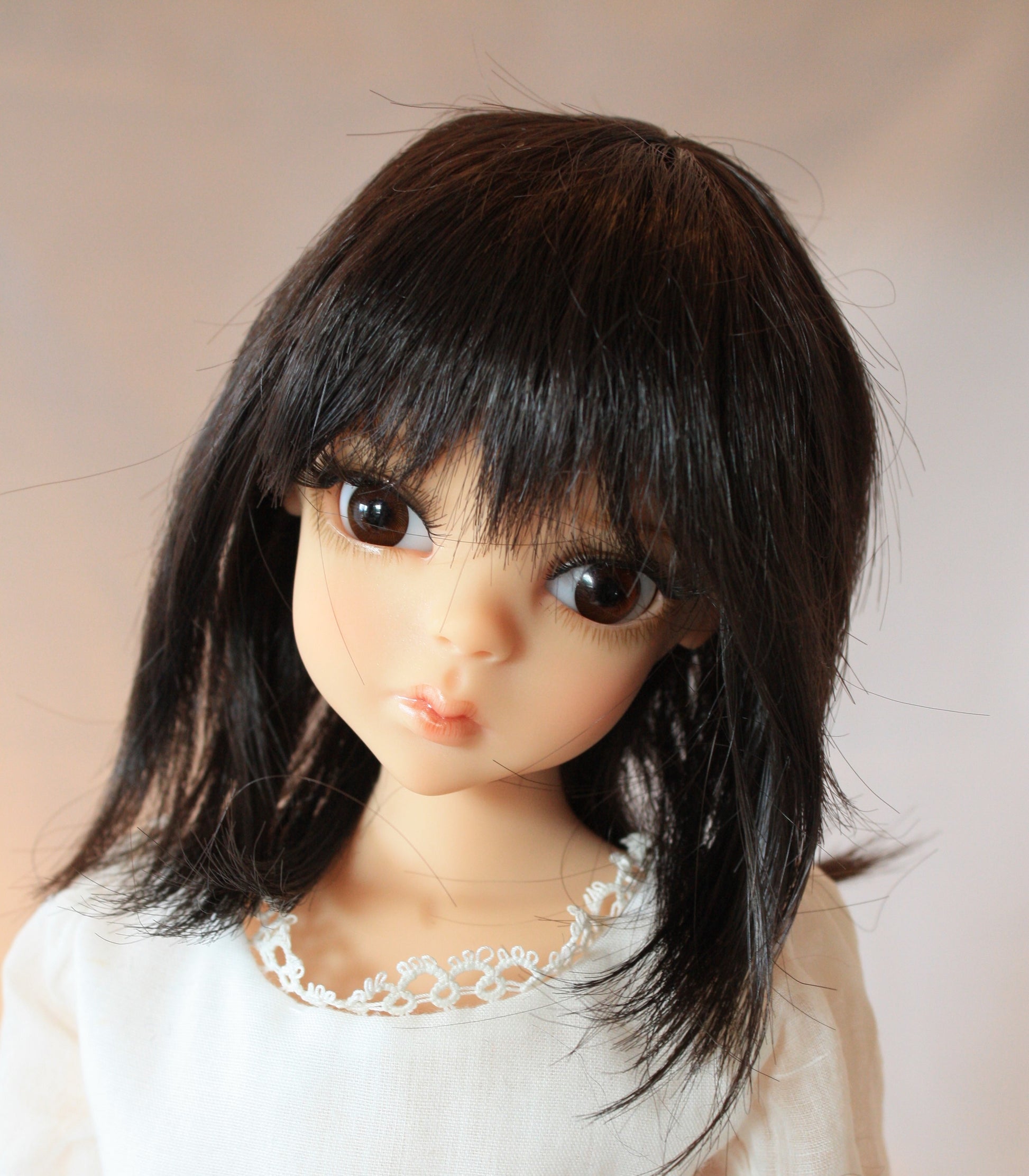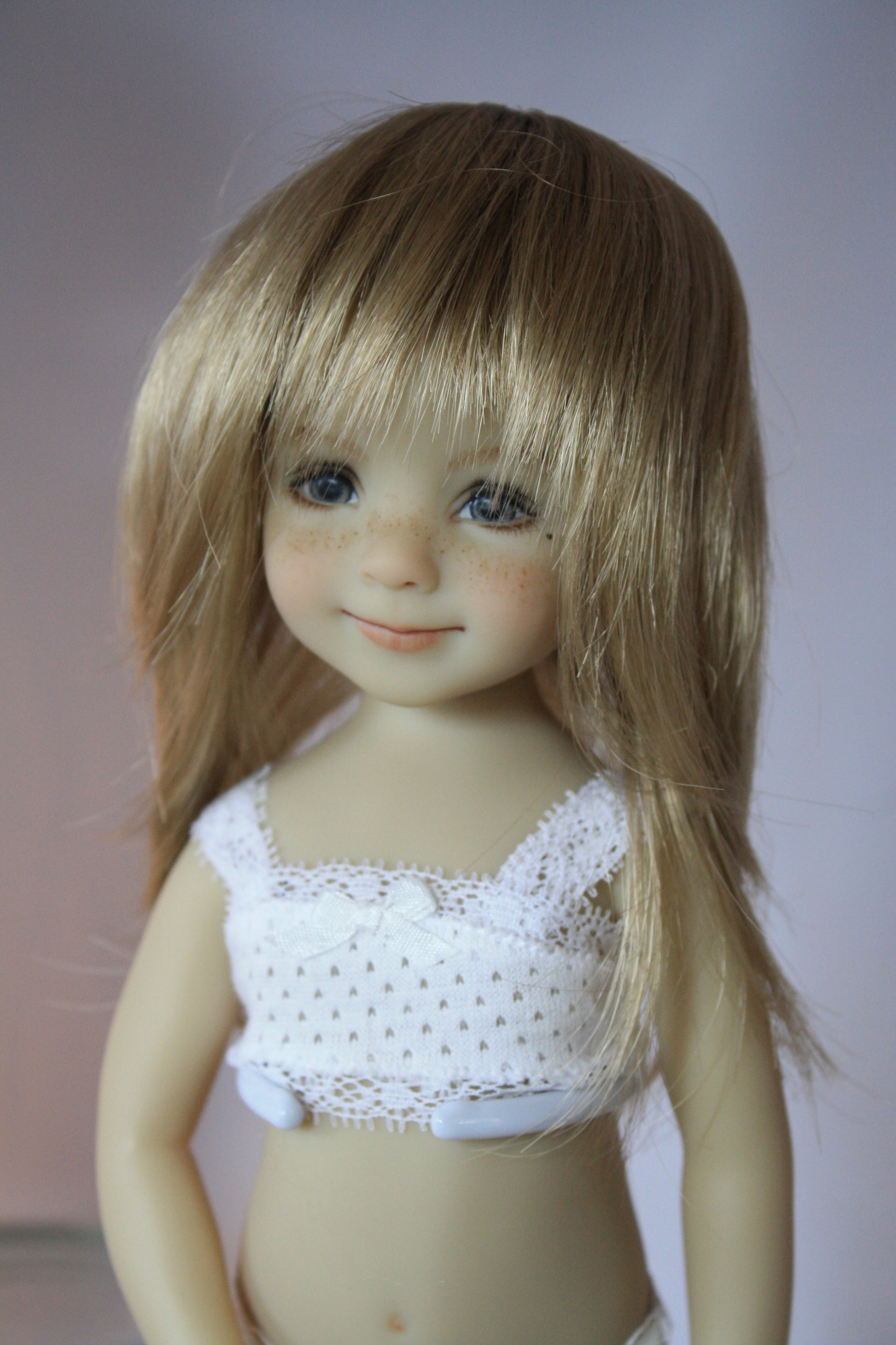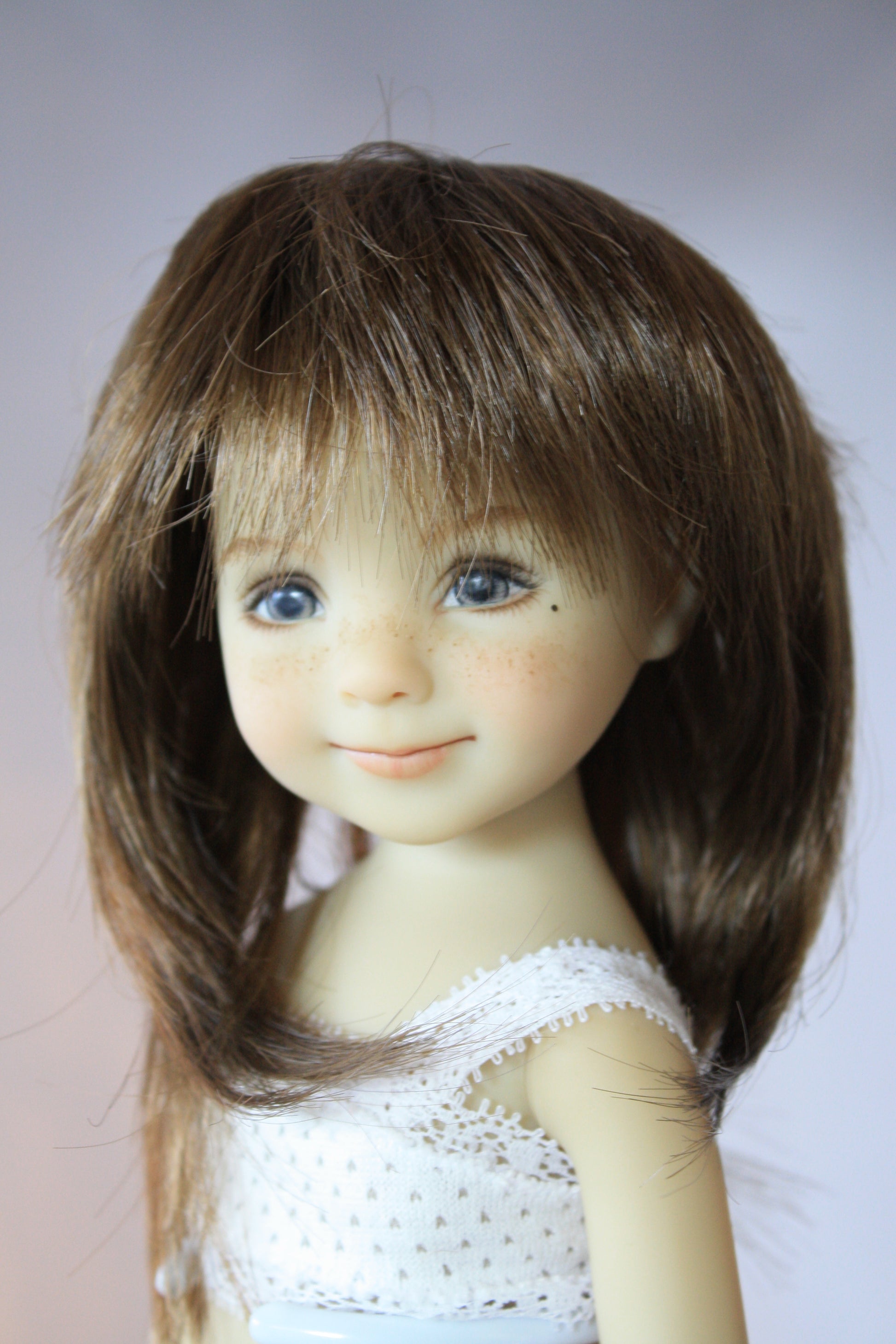 The Kara Lynn style synthetic wig is an adorable wig with a straight shag cut with bangs. She comes in only one size and a variety of colors for this discontinued wig.