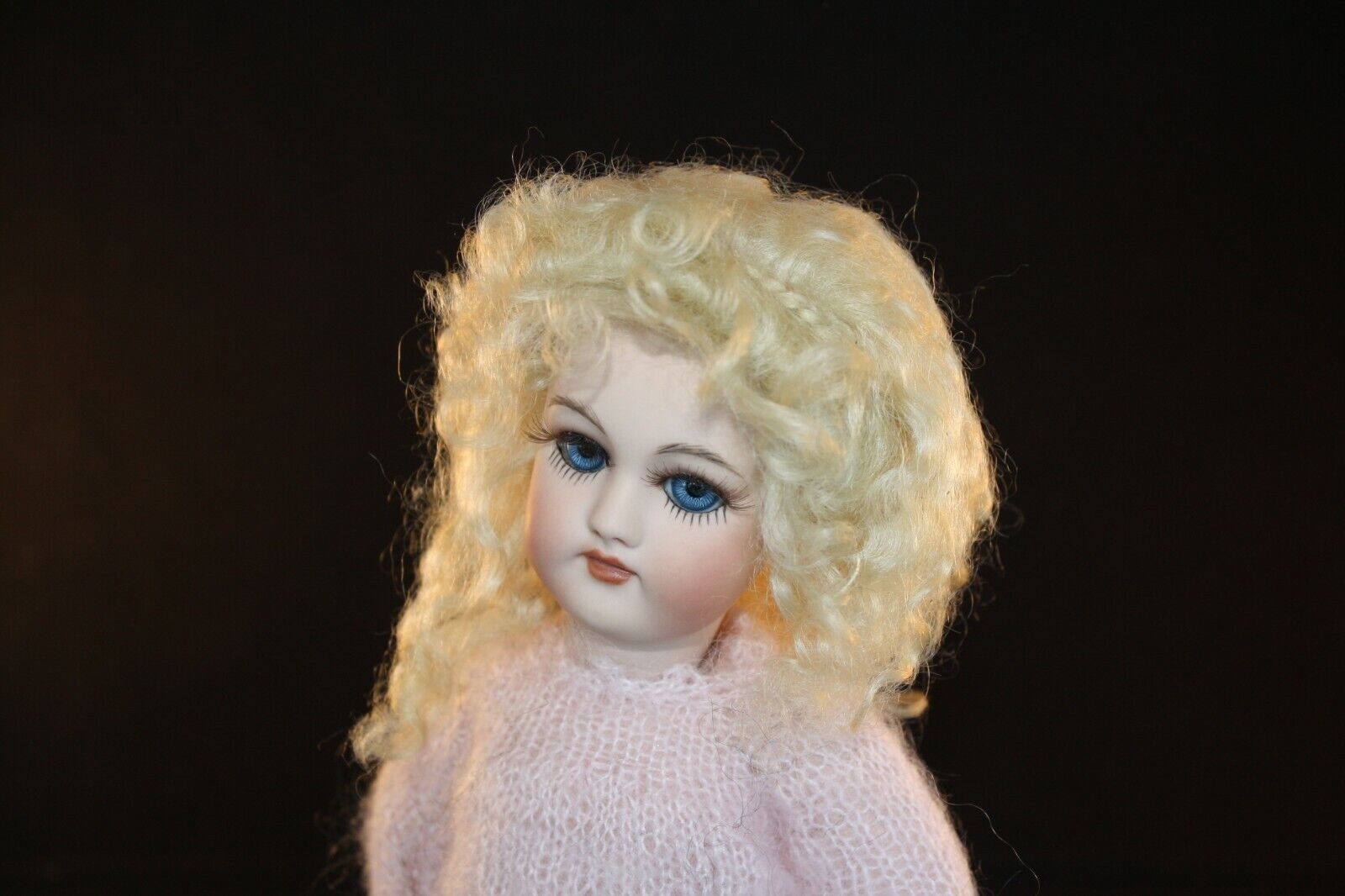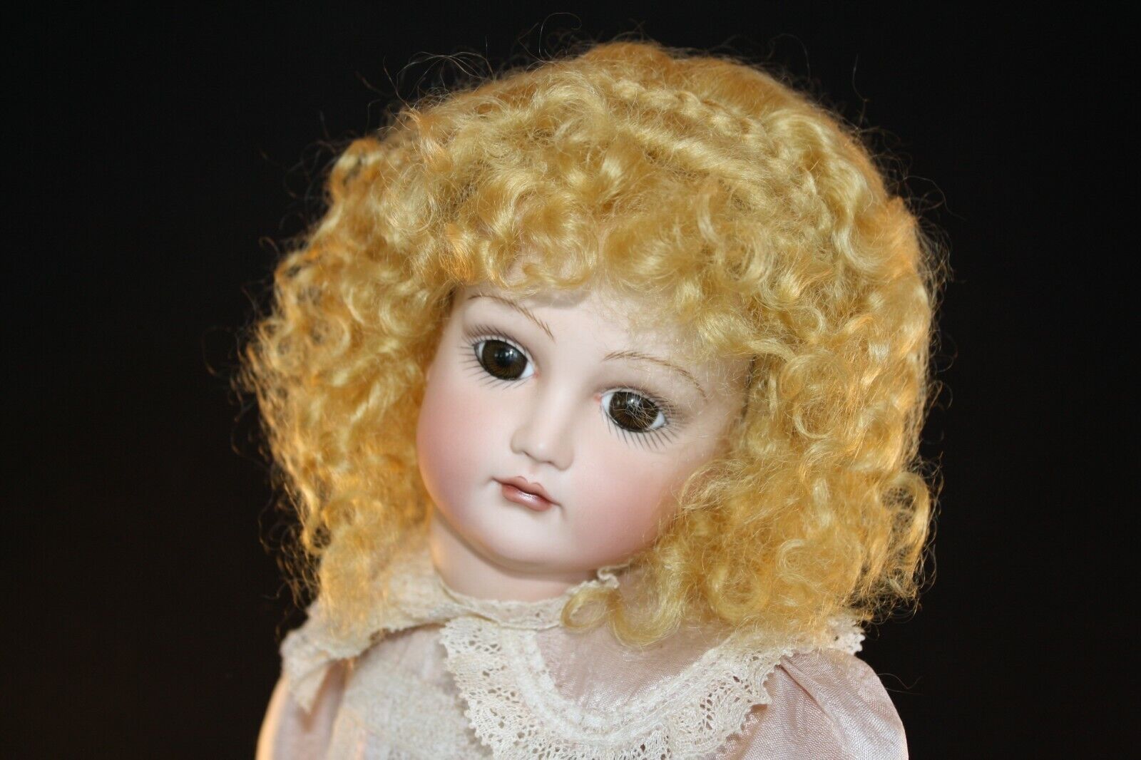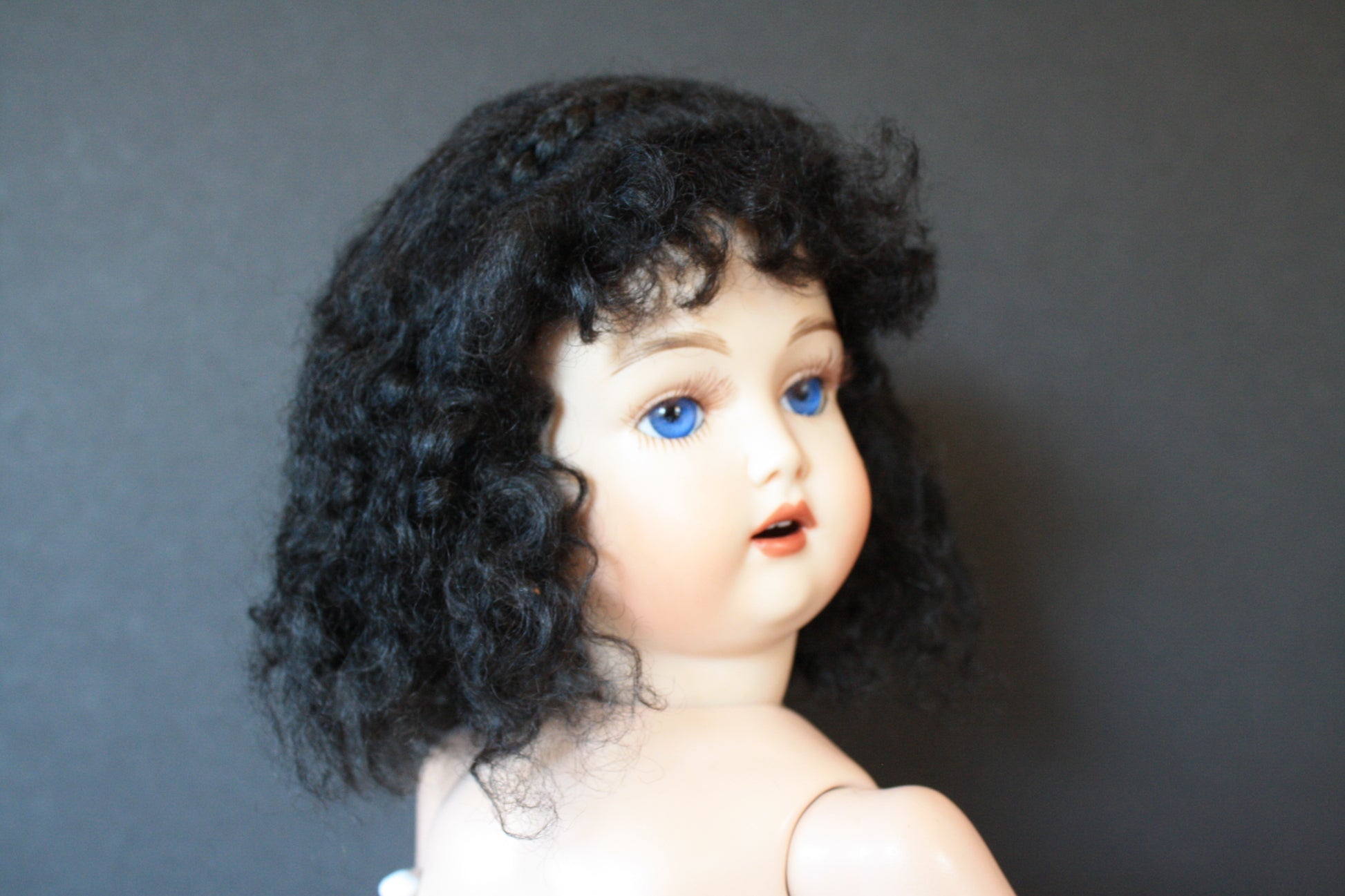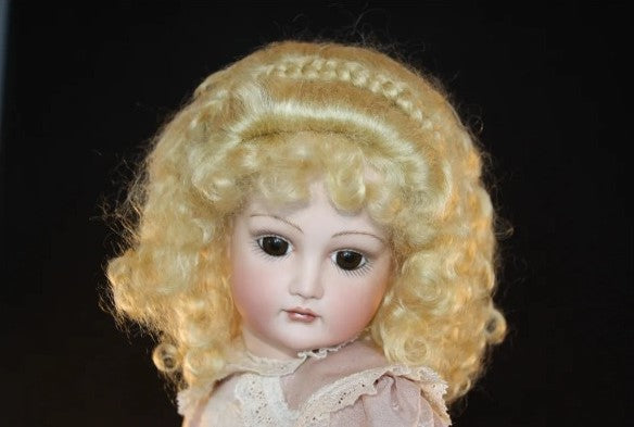 Marianne is an adorable wig with very soft curls all around. The front of the wig has little curls that can be pulled out for bangs. A tiny braid across the top forms a headband.