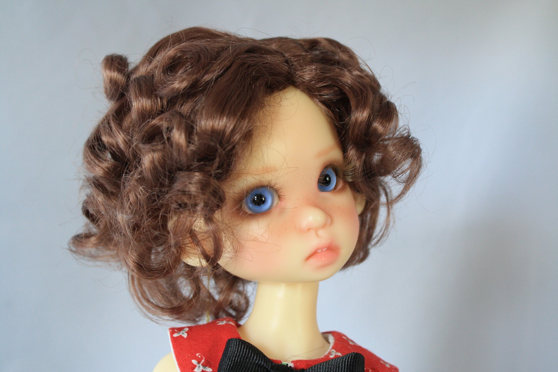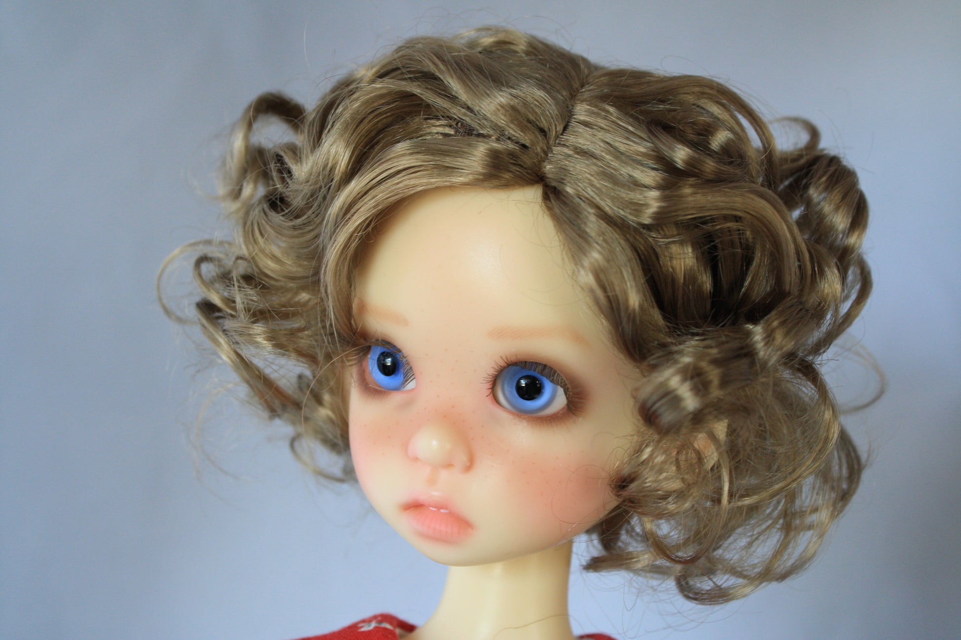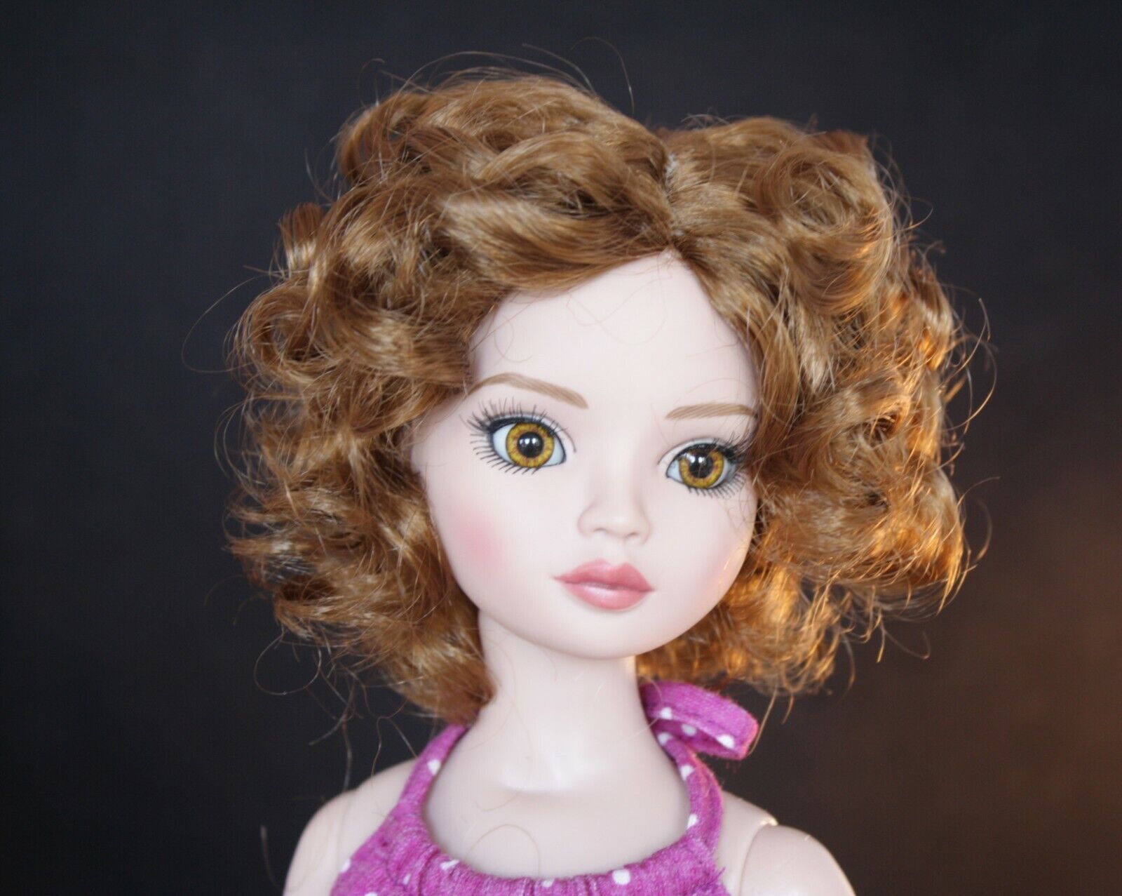 Nice wig has loose curls that are easy to style. Side part. curls are easy to pull out and soften.