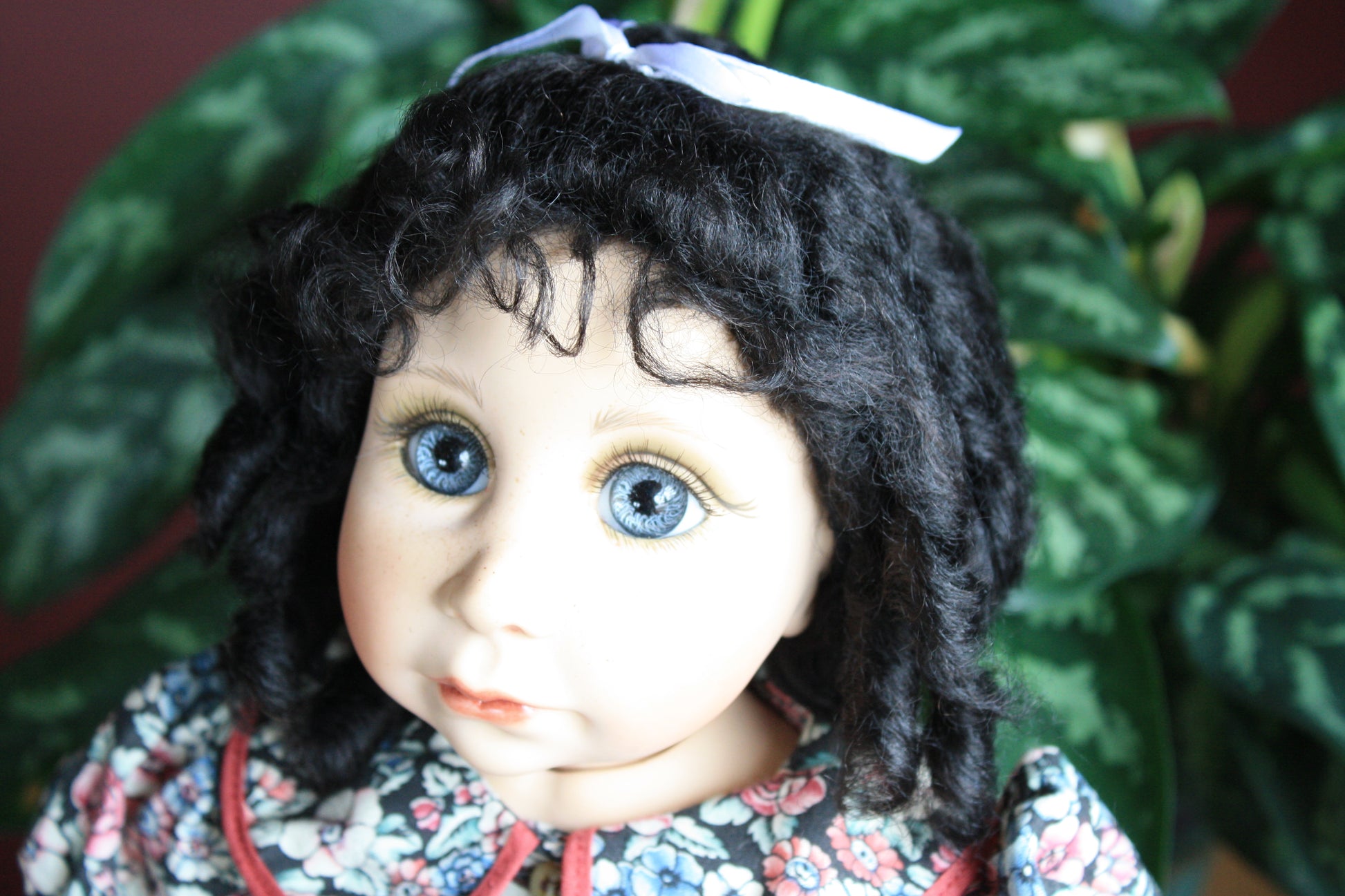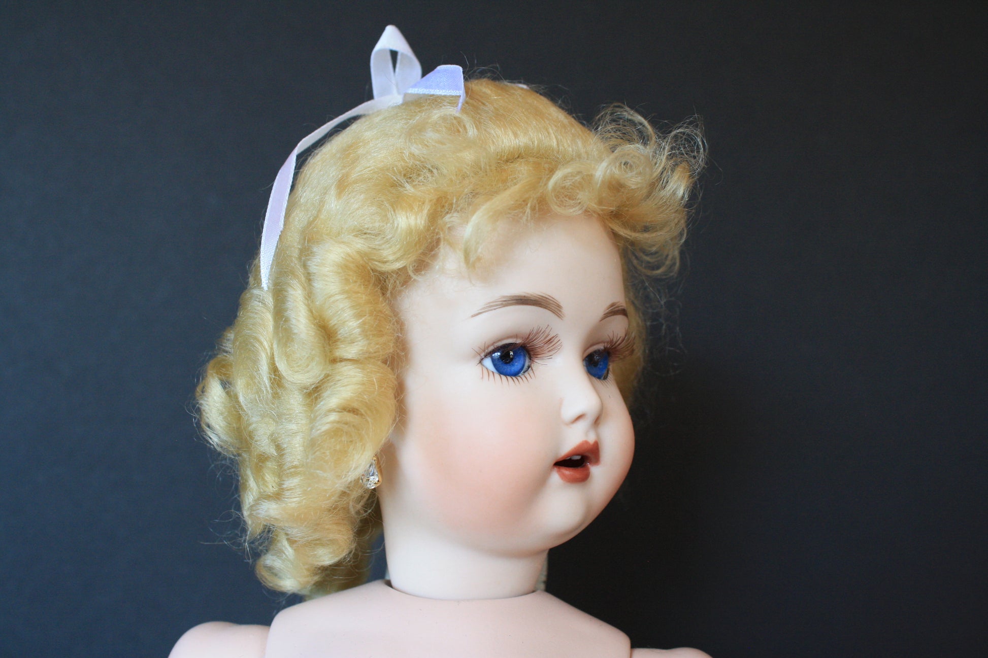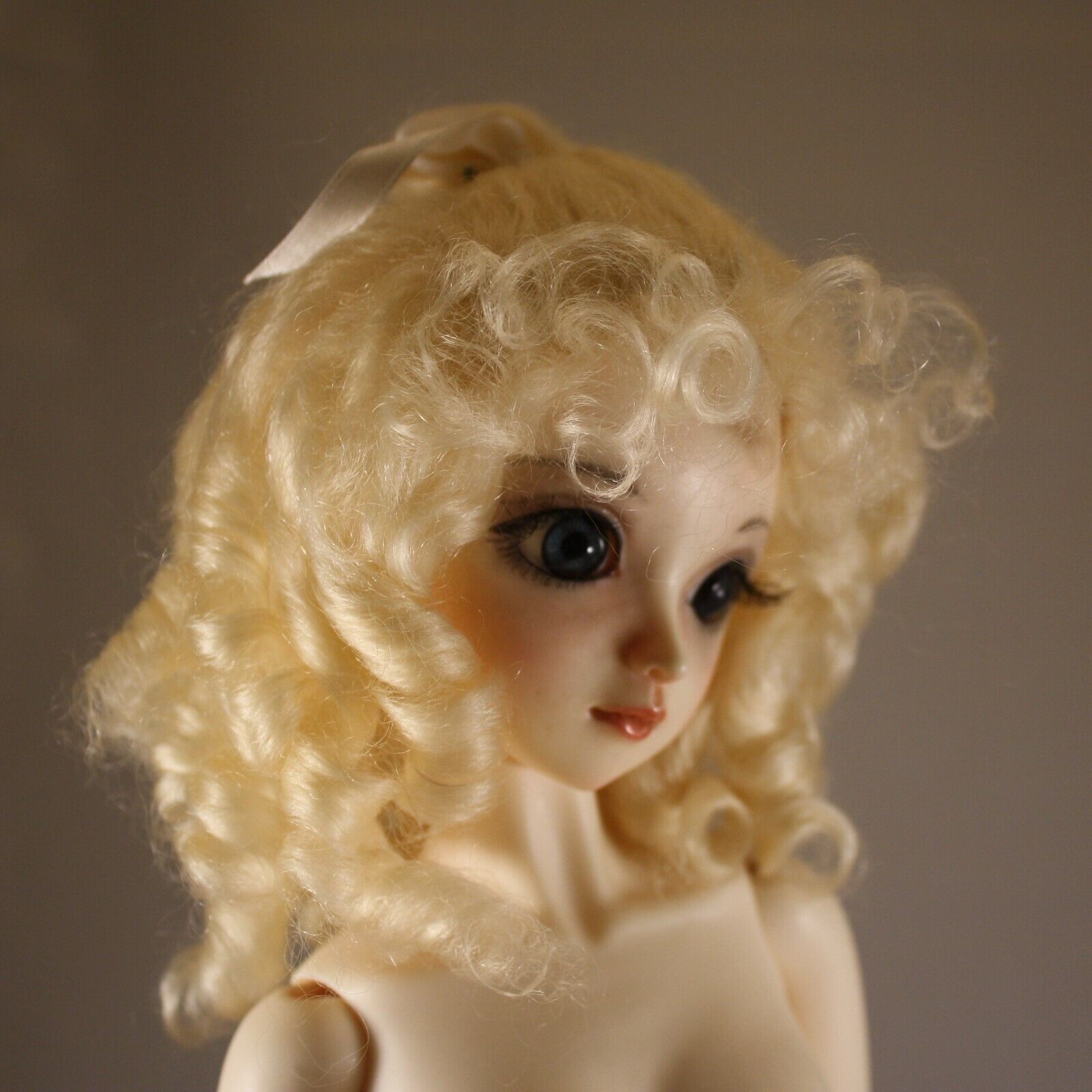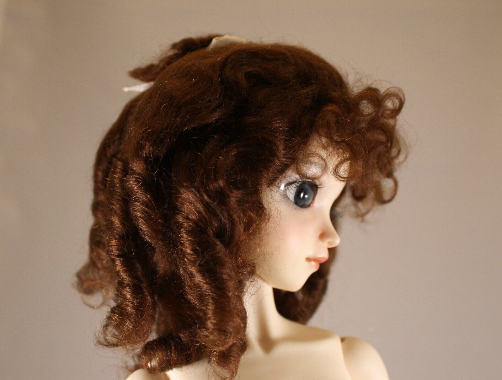 This wig has soft curls that can be softened to form bangs. The beautiful ringlets add a nice body to the wig especially where It is pulled up on the sides and tied in a white bow.