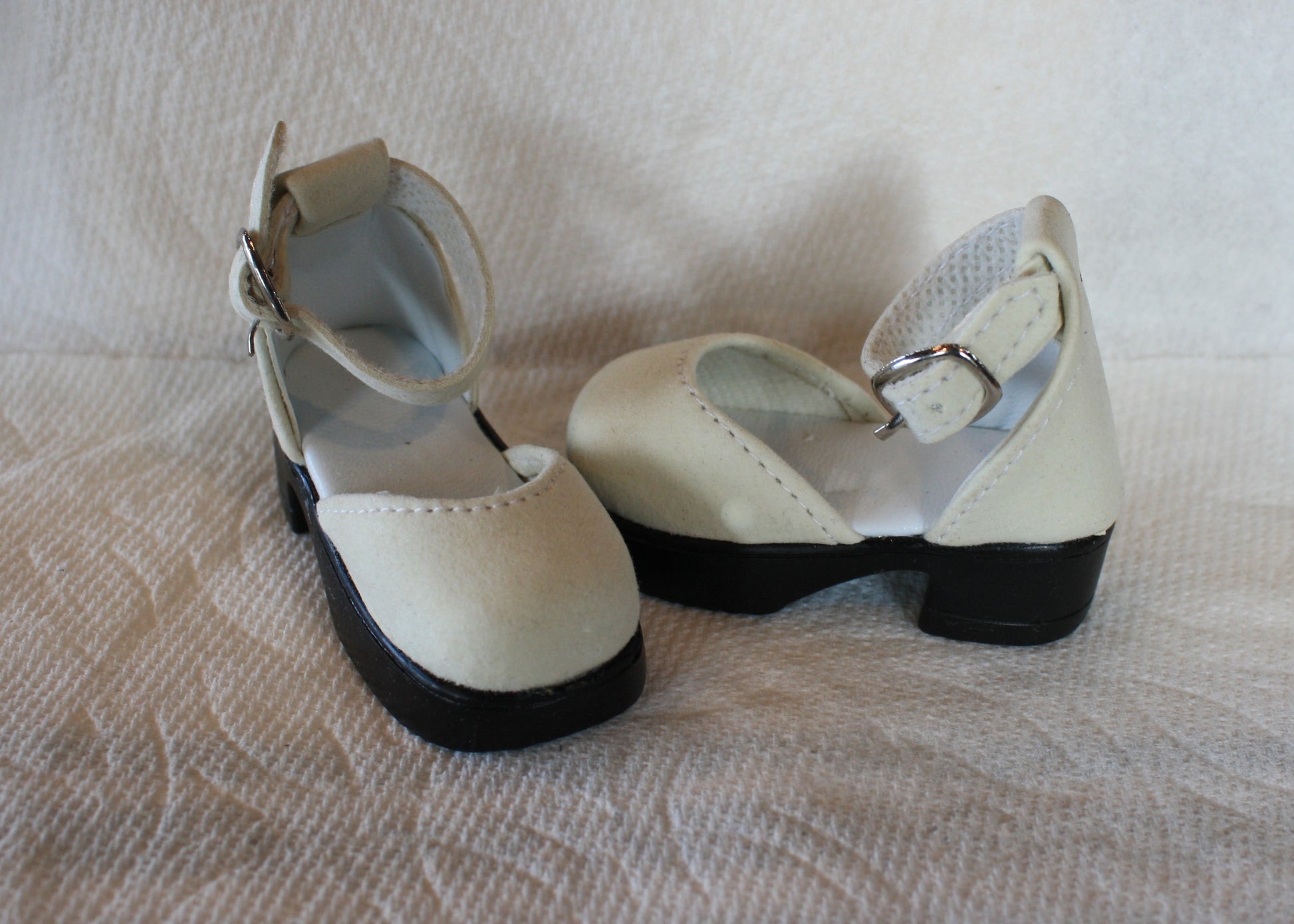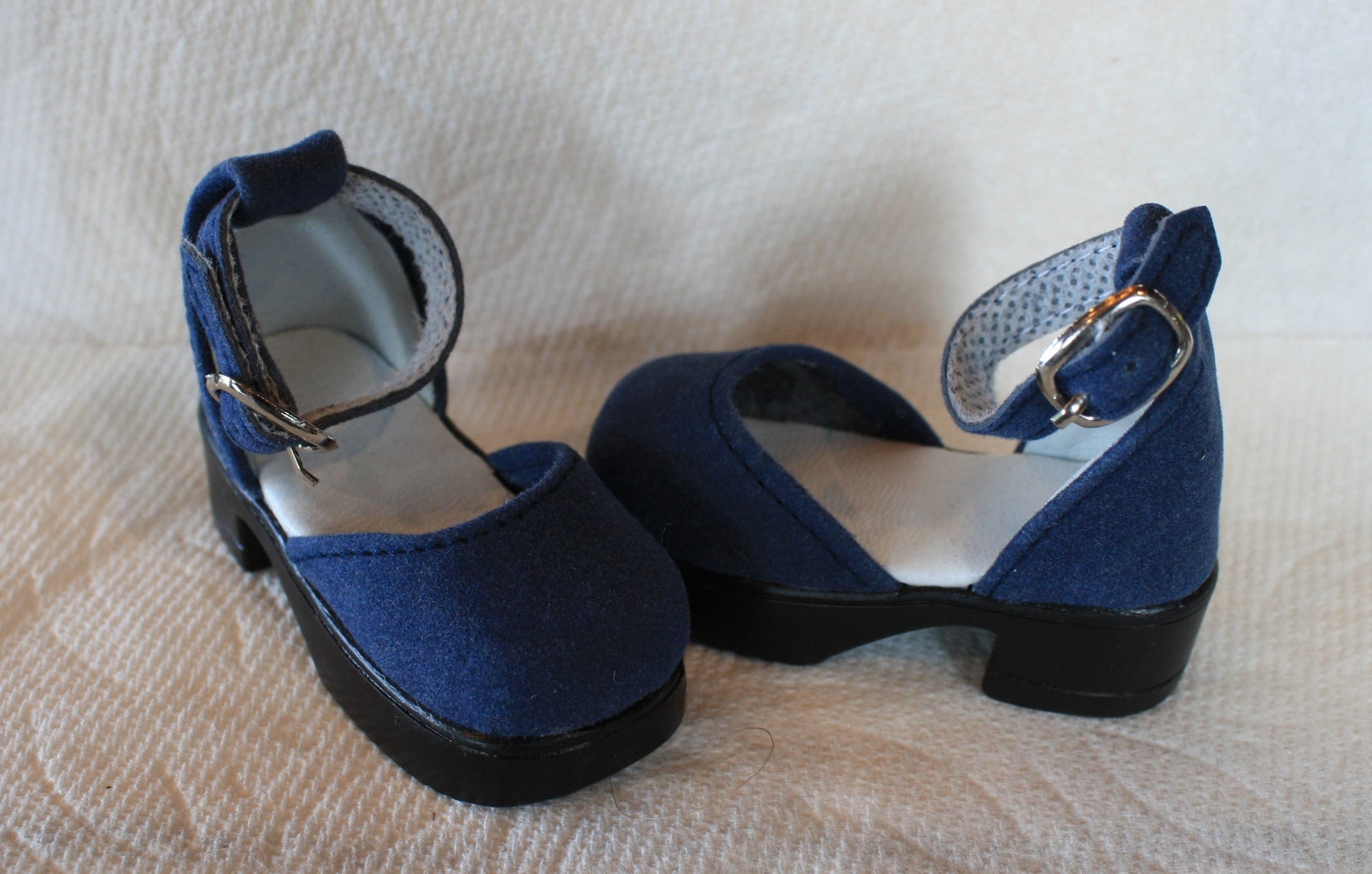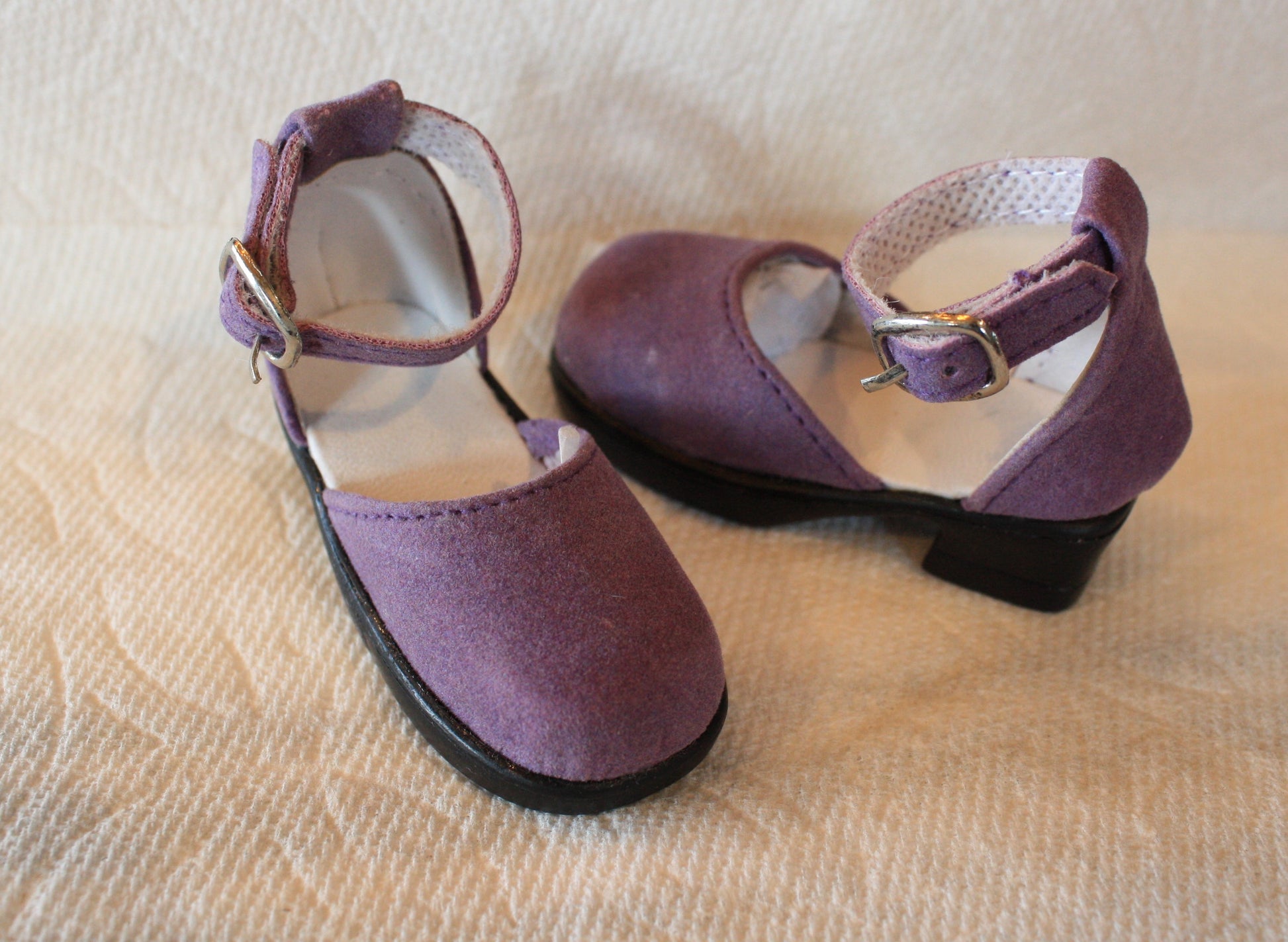 The Miss Mary Janes shoe comes in two sizes and are a suede covered shoe.