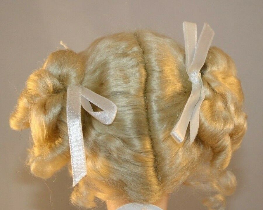 Pamela has pigtails that have 3 thick ringlets on both sides Soft curls for bangs and tendrils around the sides and neckline.