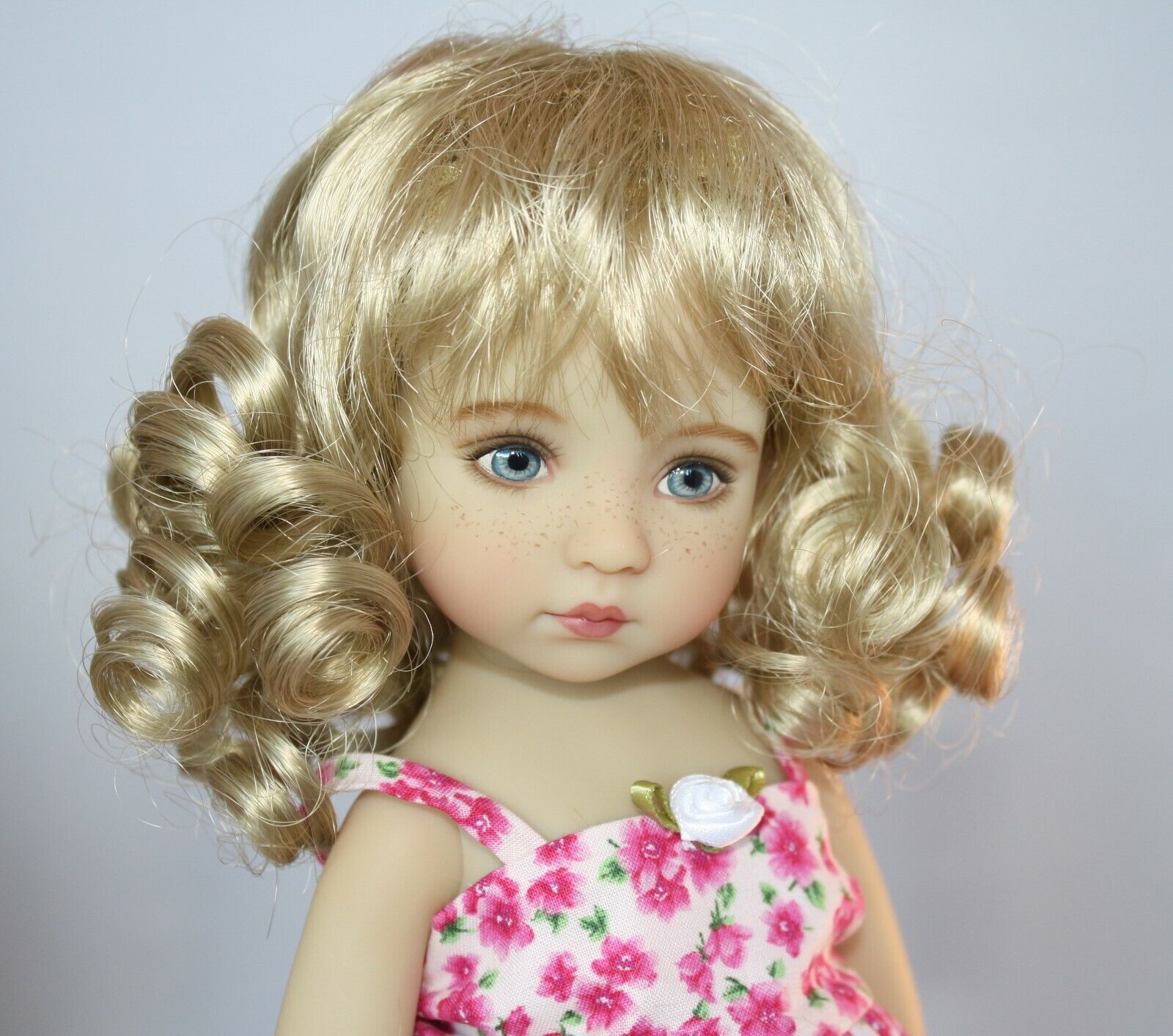 Cute Sharron style synthetic wig with soft curls, and soft bangs. It comes in 8 different colors.