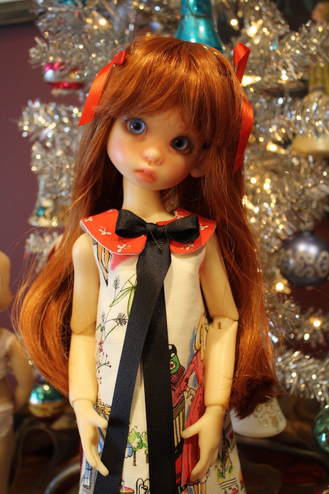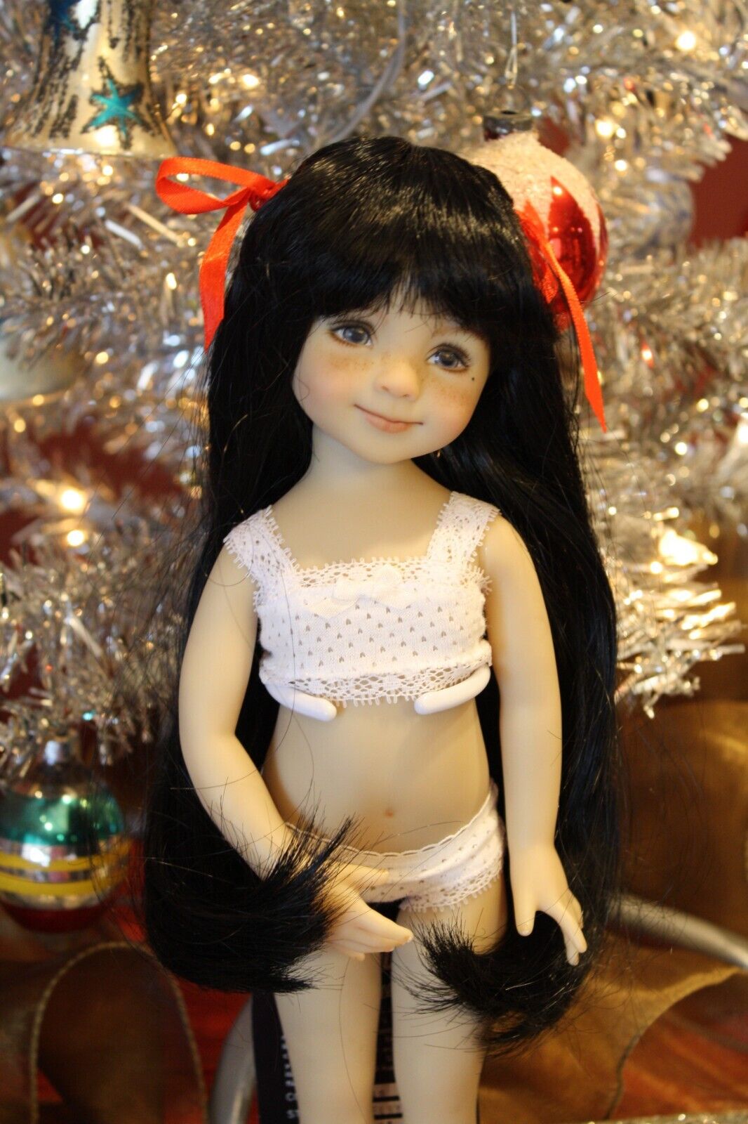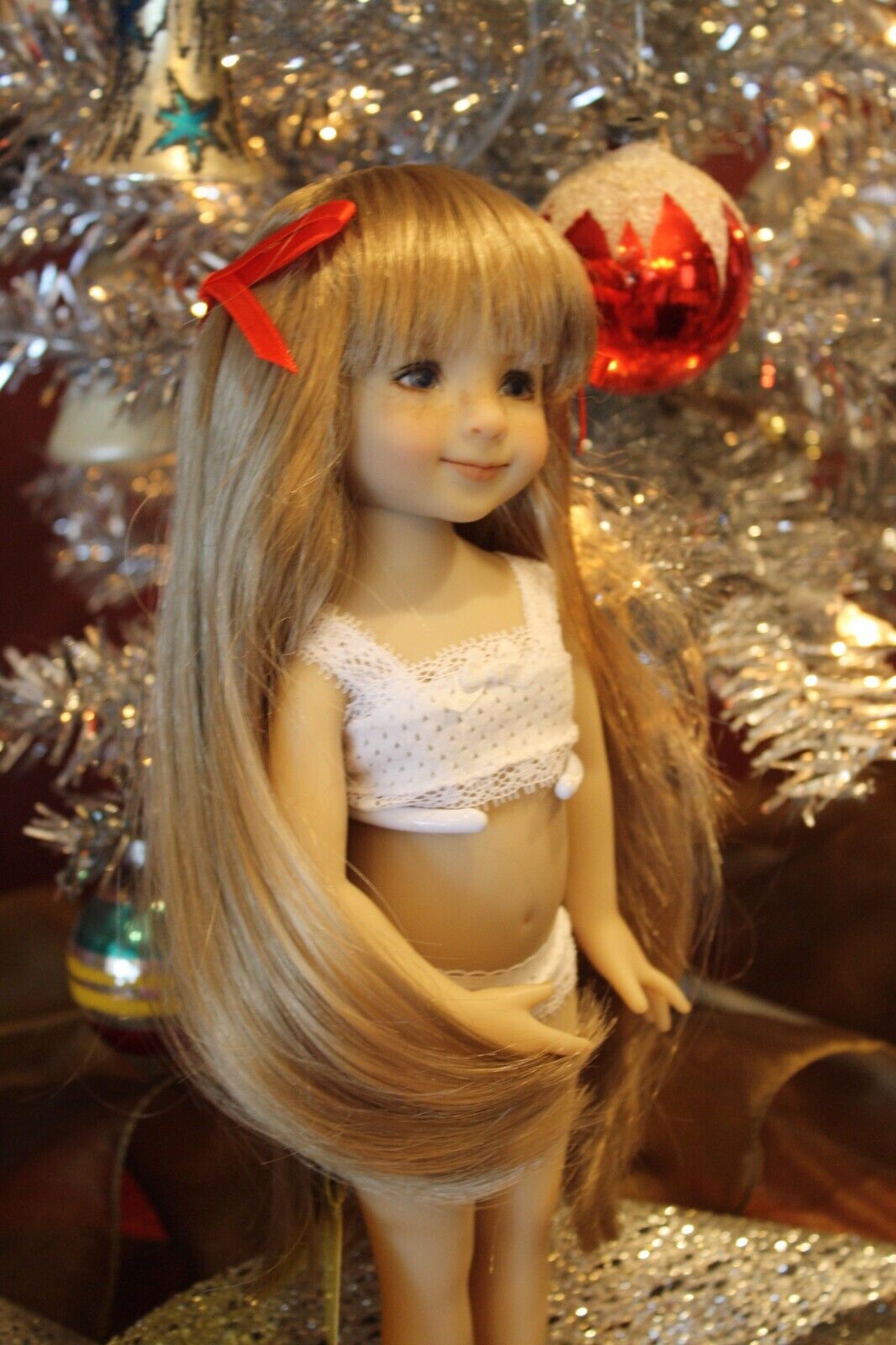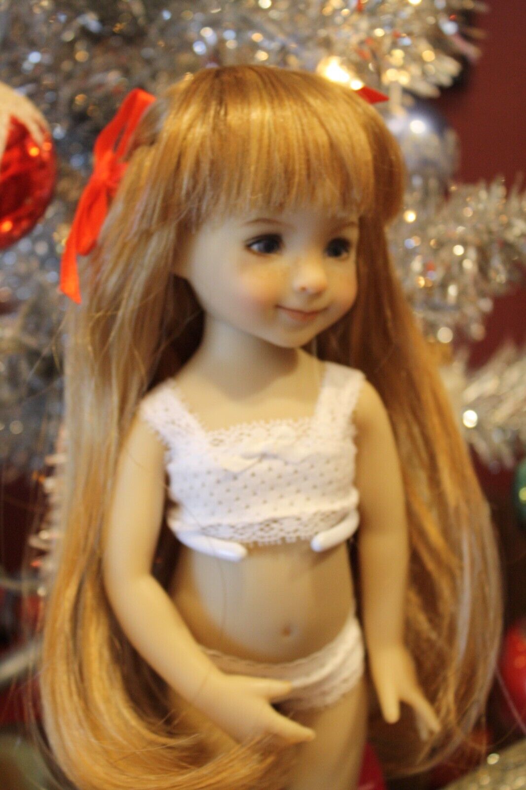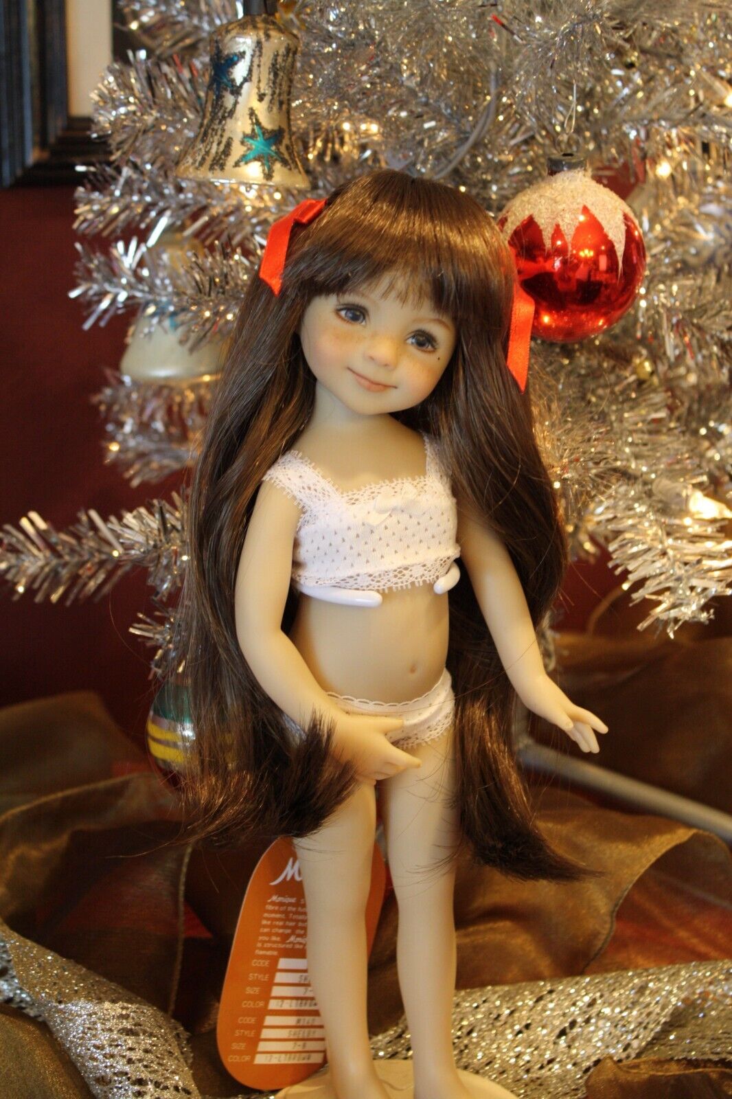 This sweet Shelby style synthetic wig has bangs and a center part. It comes with tiny bows on each side that pulls up just a small amount of hair.