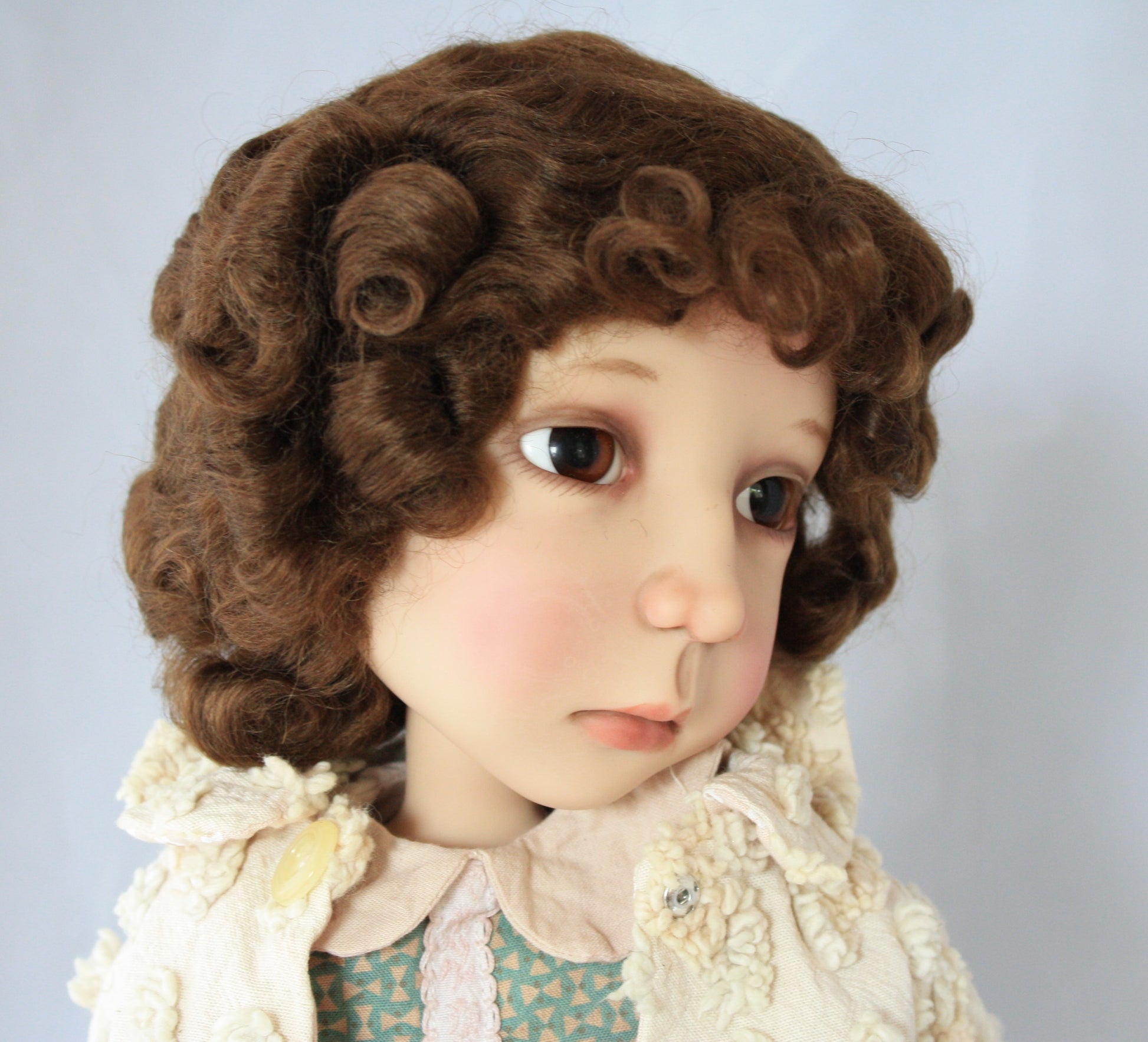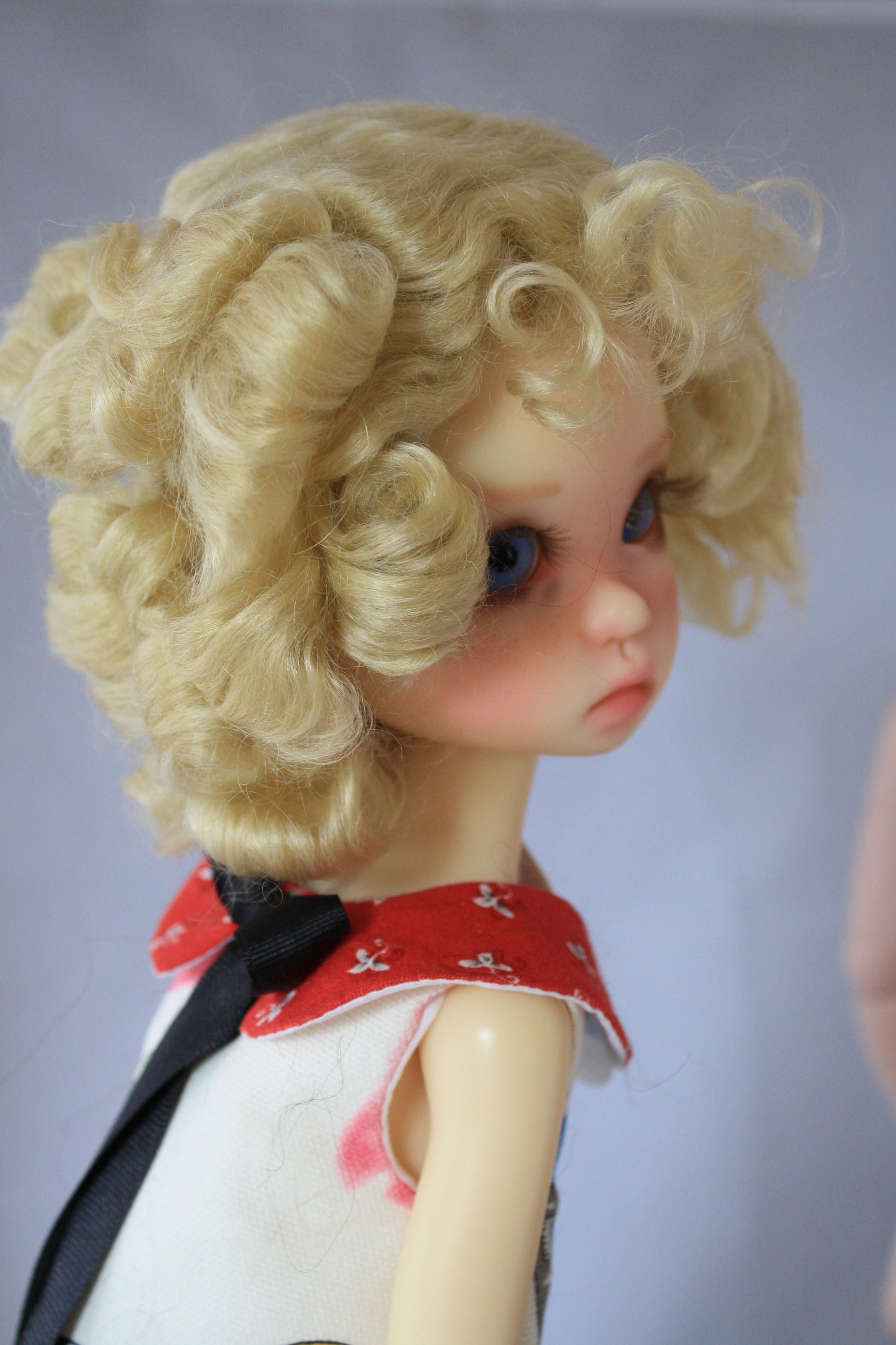 Suzanne is what I call my Shirley Temple wig. It has tight ringlets all around and curls in the front you can soften to give a little bit of bangs.