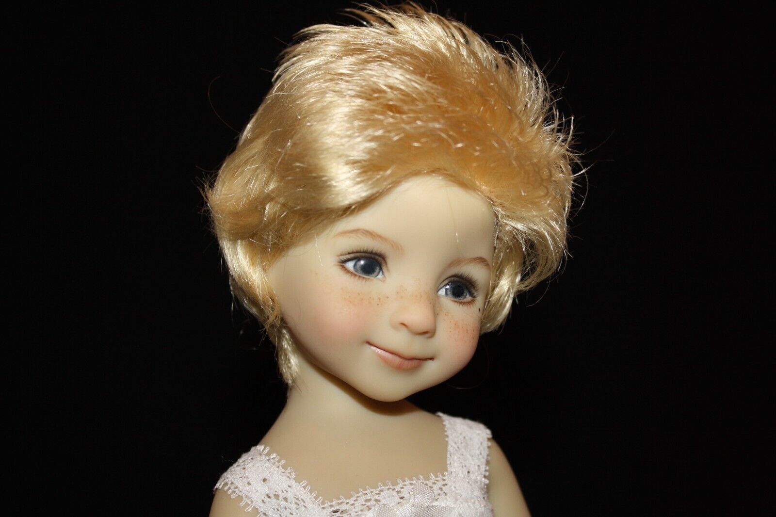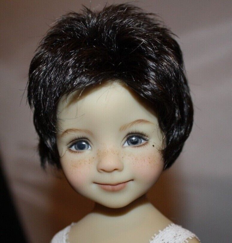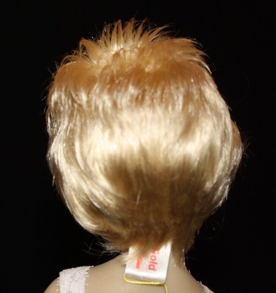 Adorable short wig. Handmade for Monique and is made of synthetic mohair. Perfect for boy and girl dolls. A little spikey on the top. This wig has a clear cap. Limited amounts!