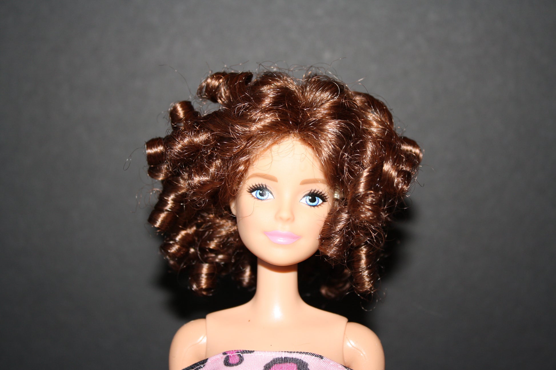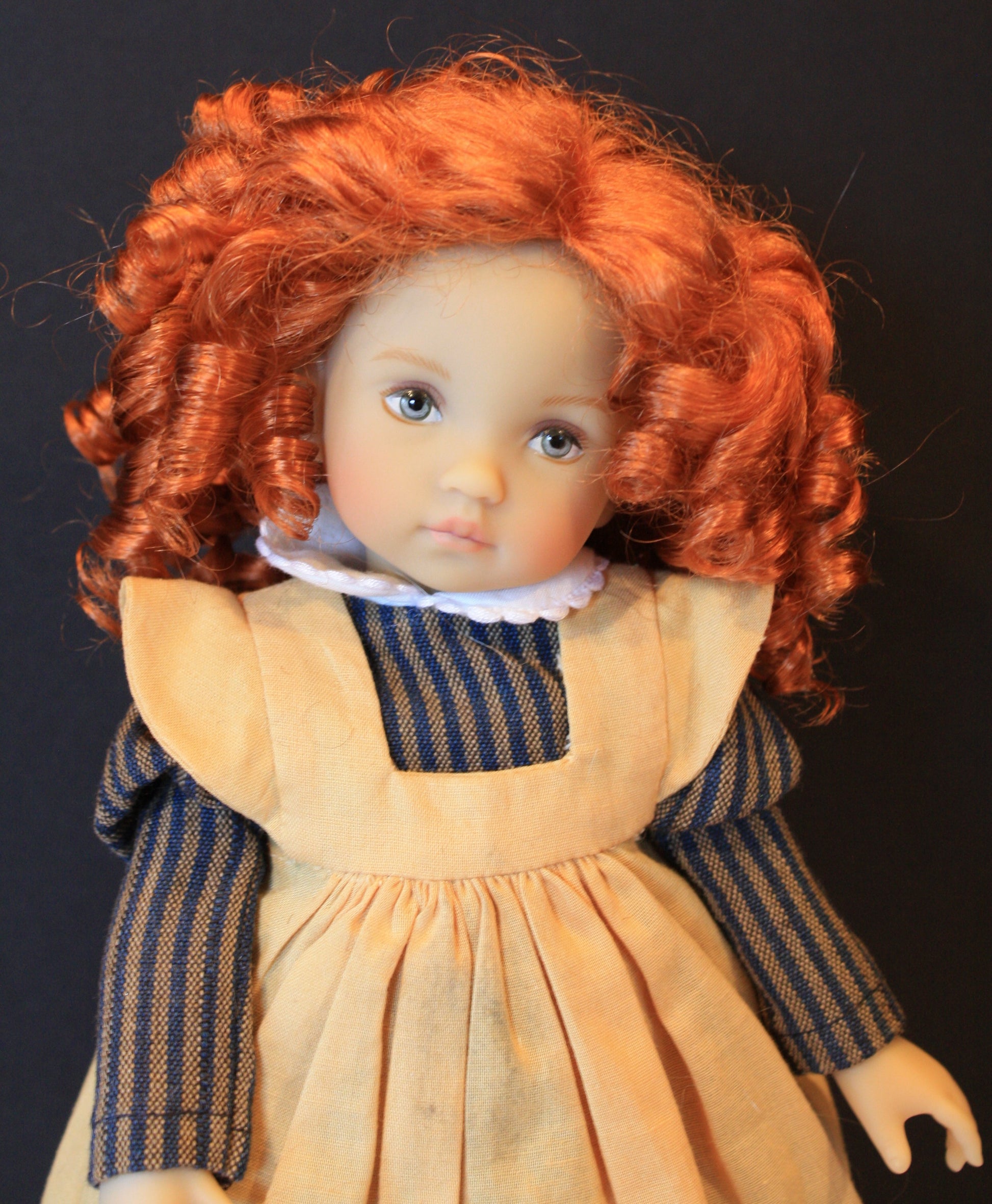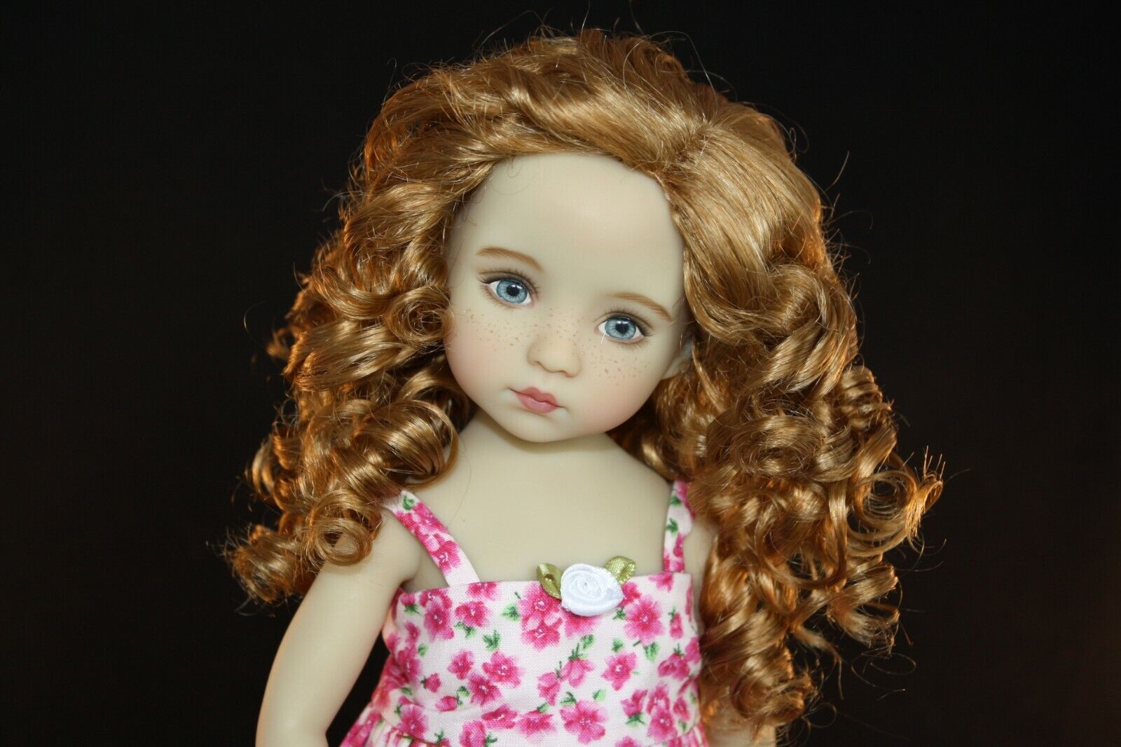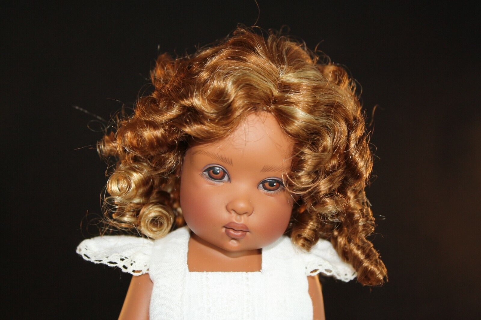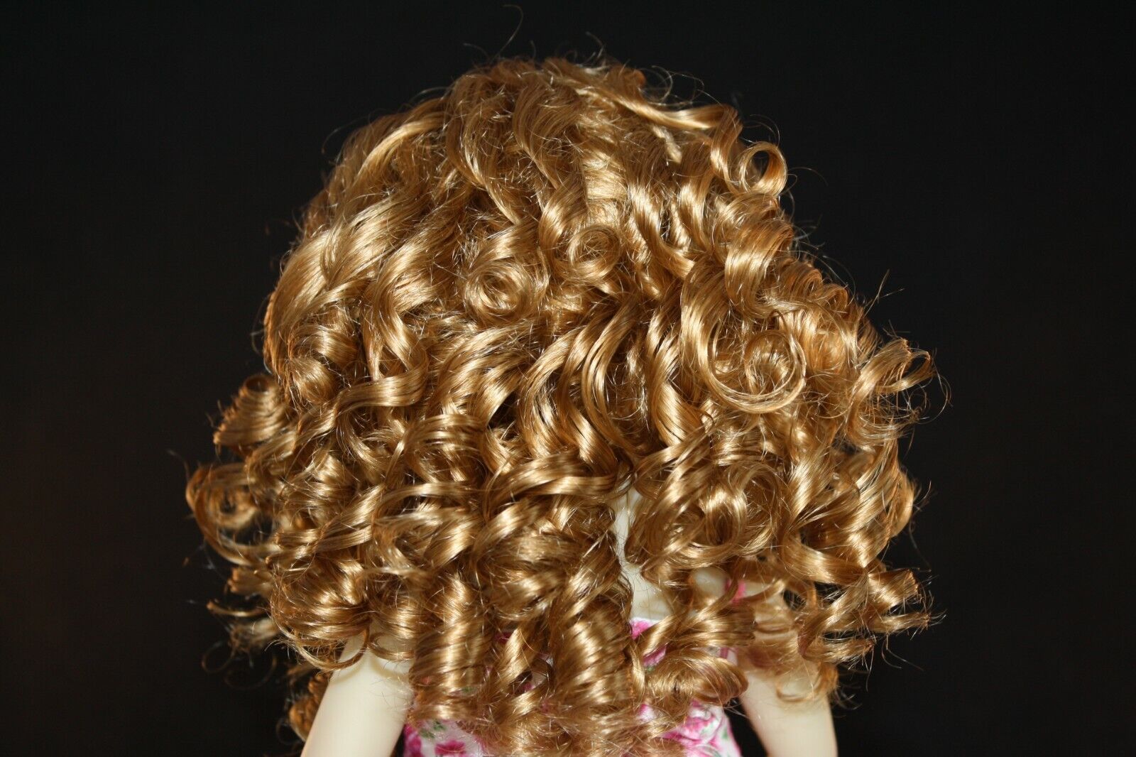 Adorable little wig that has spiral curls all around the head. This wig has no bangs but it would be very easy to cut a tiny fringe if you wanted some.