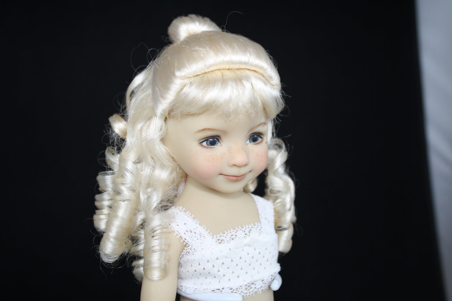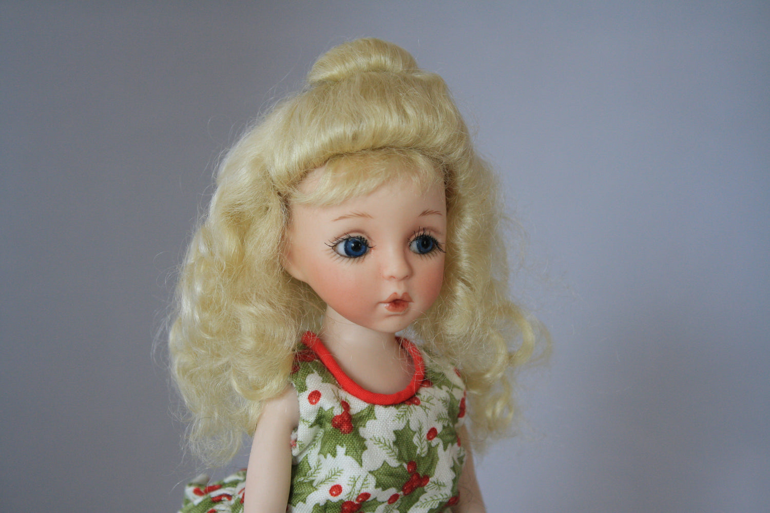 Smaller sized mohair wigs ranging from 1.75 to 4.5-inch heads.